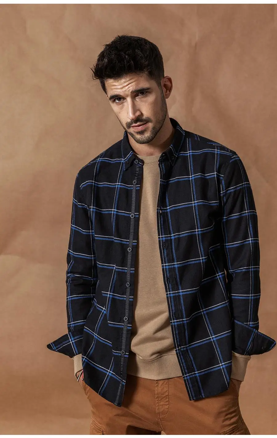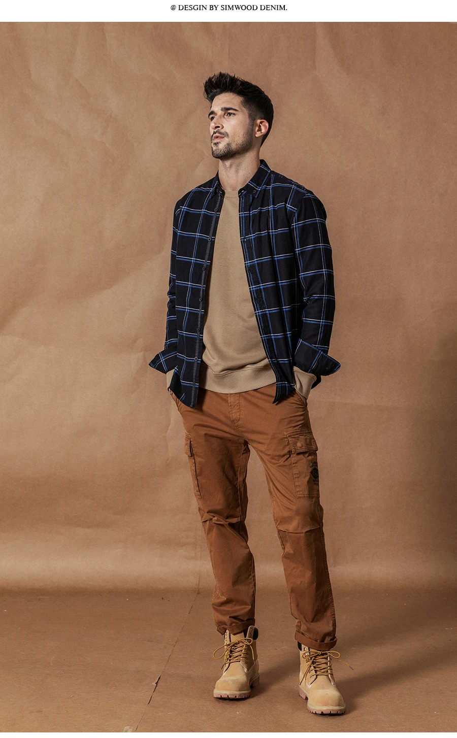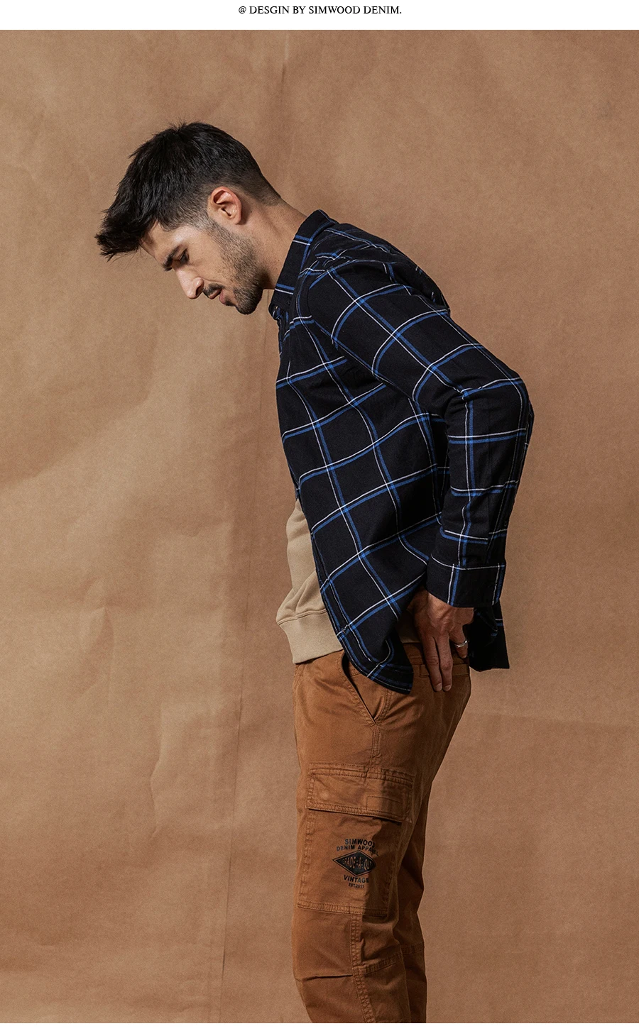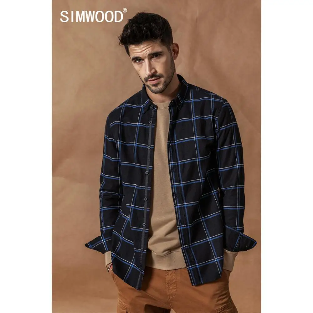Рубашка SIMWOOD мужская с длинным рукавом, Повседневная приталенная рубашка из 2021 чистого хлопка, в клетку, 100% размера плюс