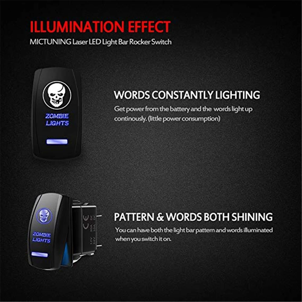 MICTUNING 5 Pin ВКЛ-ВЫКЛ кулисный переключатель SPST разработан (однополюсный одиночный бросок) переключатель, он поставляется вместе с набором перемычек проводов, простой в установке, может легко включать/выключать свет;