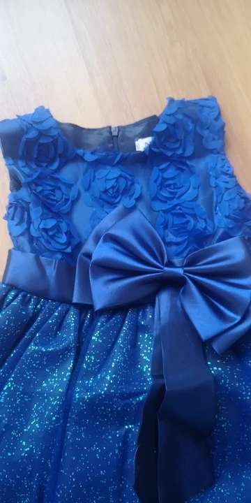 Платье красивое, но маломерка. Минимум на размер больше надо брать. Я брала с запасом, так что нам подошло. Полностью искусственное, подклад тоже. Доставка в Беларусь полтора месяца