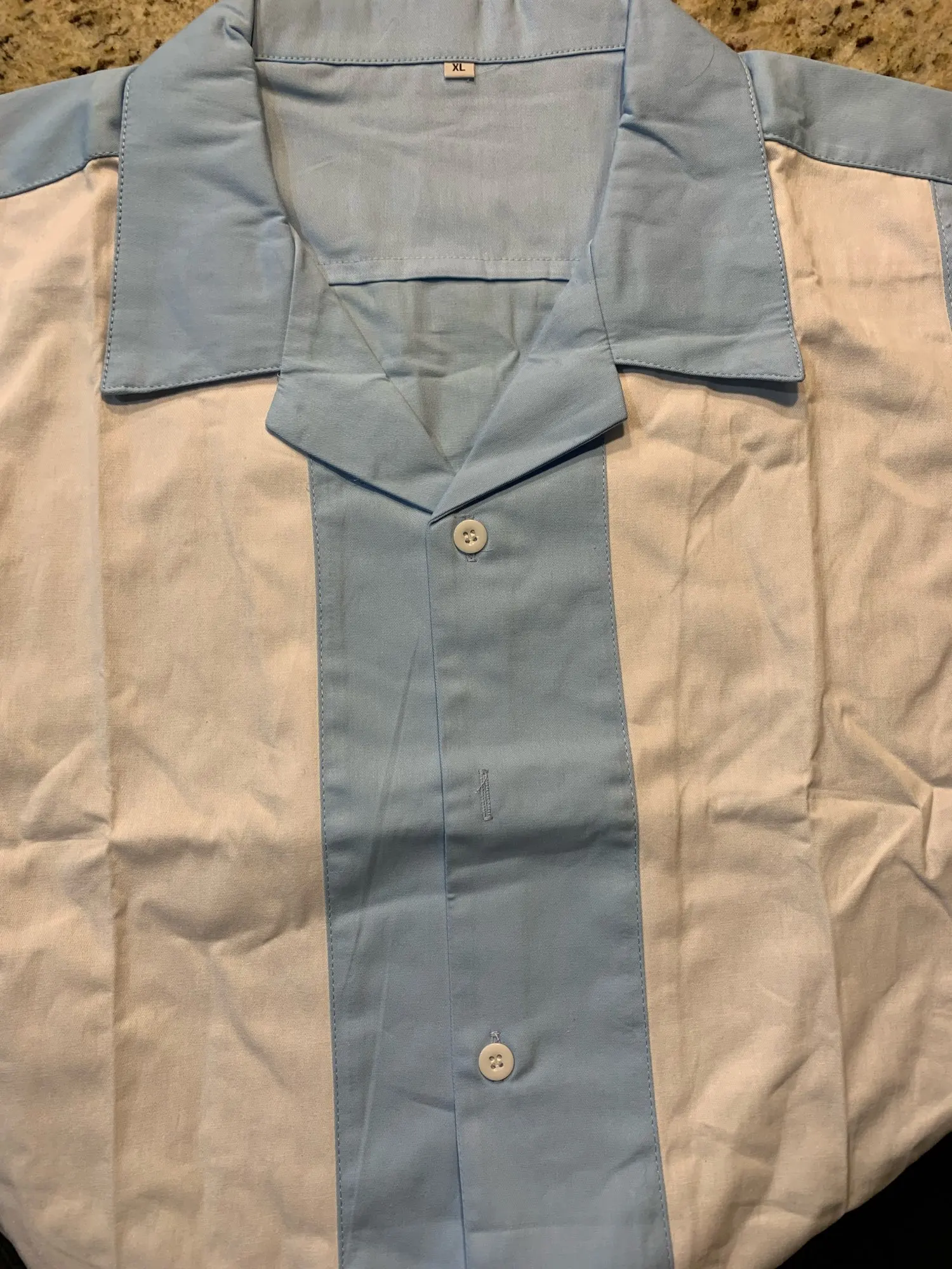 Рубашка мужская в Вертикальную Полоску, дизайнерская блузка с коротким рукавом, на пуговицах, в стиле ретро, боулинг, голубая белая