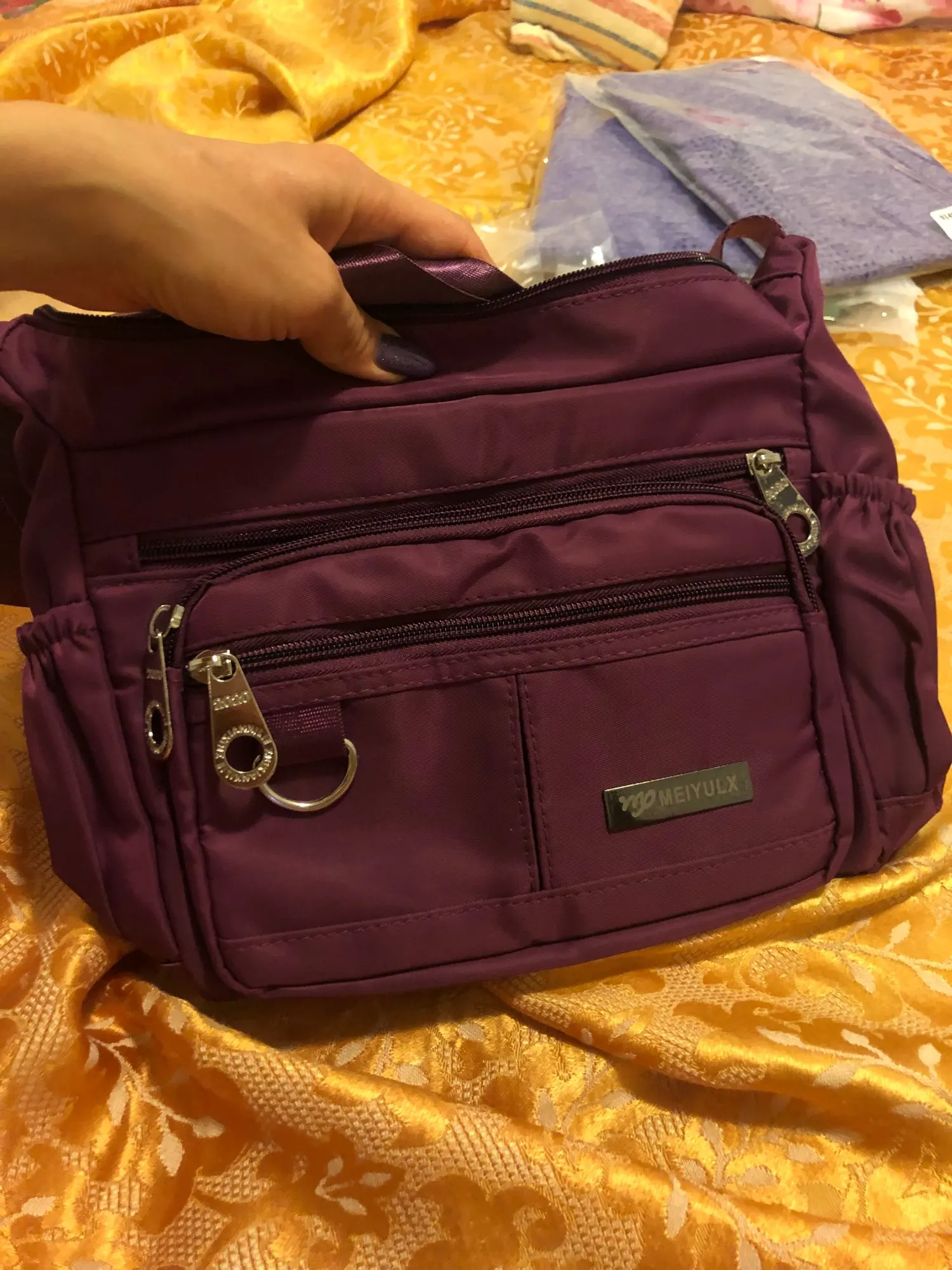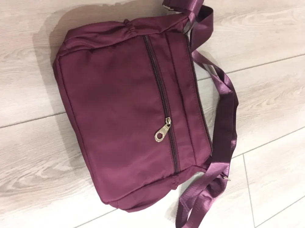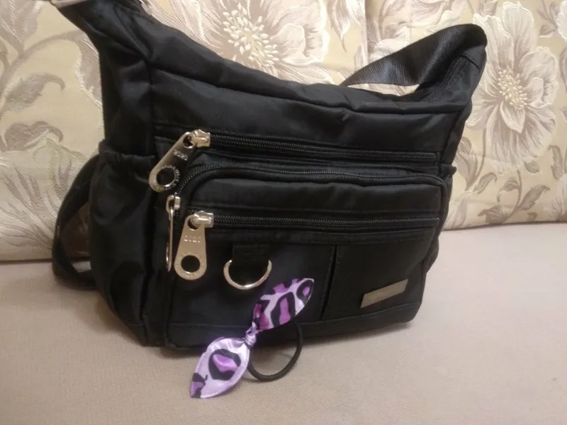Красивая сумка с множеством карманов и молний. Слегка толстый материал, водоотталкивающий.