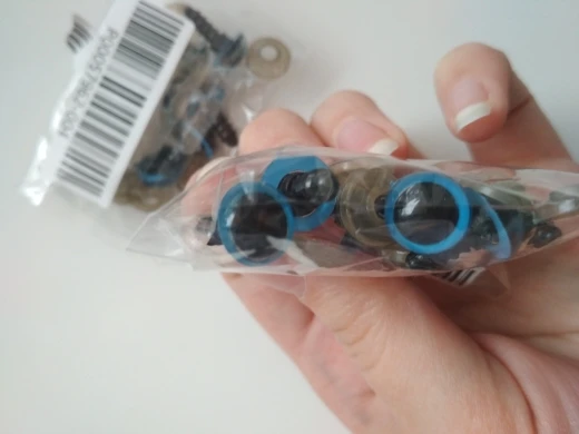 Заказываю у этого продавца уже не первый раз, так как глазки действительно классные! Лично с ним не общалась, нужды не было. Глазки пришли примерно за 3 недели, в обычном пупырчатом почтовом пакете, каждый цвет в индивидуальном пакетике. Что касается качества- есть небольшие дефекты в виде сколов на ободках и потертости, но совсем незначительные. Лично для меня это особой роли не играет, так как эта область прячется в пряже и ничего не видно. В комплекте также заглушки. В этот раз заказала много, в голубом и золотом цветах, глазки очень насыщенные, по количеству не считала. Спасибо, я очень довольна!