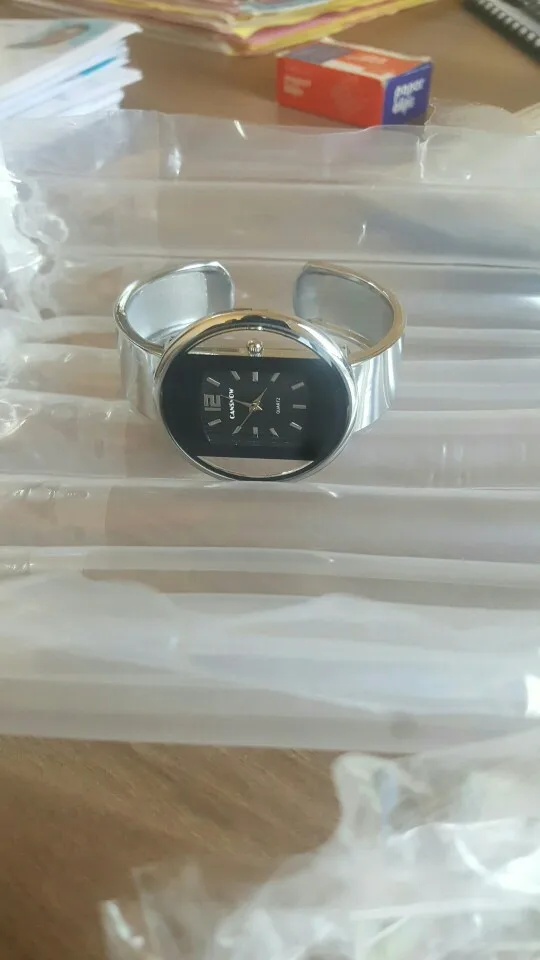 Удобные часы как на фото, без сколов и засечек. Упакованы хорошо, работают))) ремешок как крабик на руке, цепляется за руку по сути. но понятно-вещь ненадолго.
