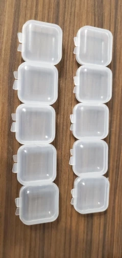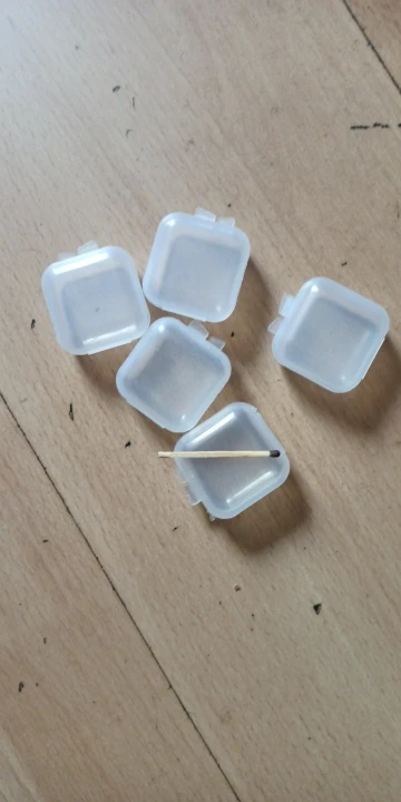 Отличные коробочки, маленькие, то что нужно. Конечно место петли хлипкое, если очень часто открывать, то может сломаться, но под мои задачи подходит. Одна коробочка была слегка испачкана черным, похоже на техническую смазку, удалилась спиртом легко. Звезду снимать не буду. Упаковано хорошо, пришло быстро, в сборной посылке. В подарок продавец положил красивые стеклянные бусины. Большое спасибо! Продавца рекомендую!