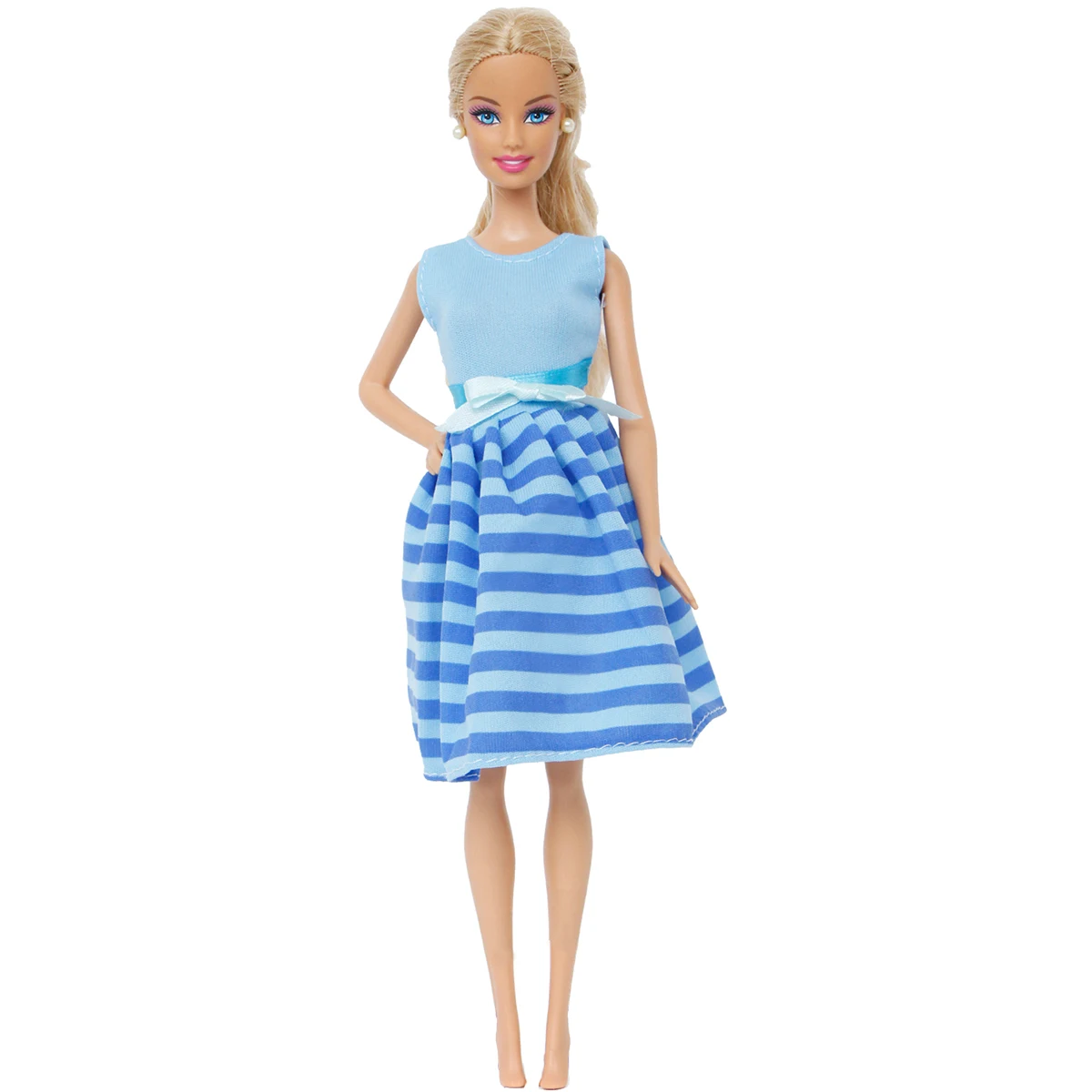 Милое летнее Полосатое синее мини-платье с бантом, вечерние платья, повседневные кукольные аксессуары, Одежда для куклы Барби, девочка, кукольный домик, игрушка