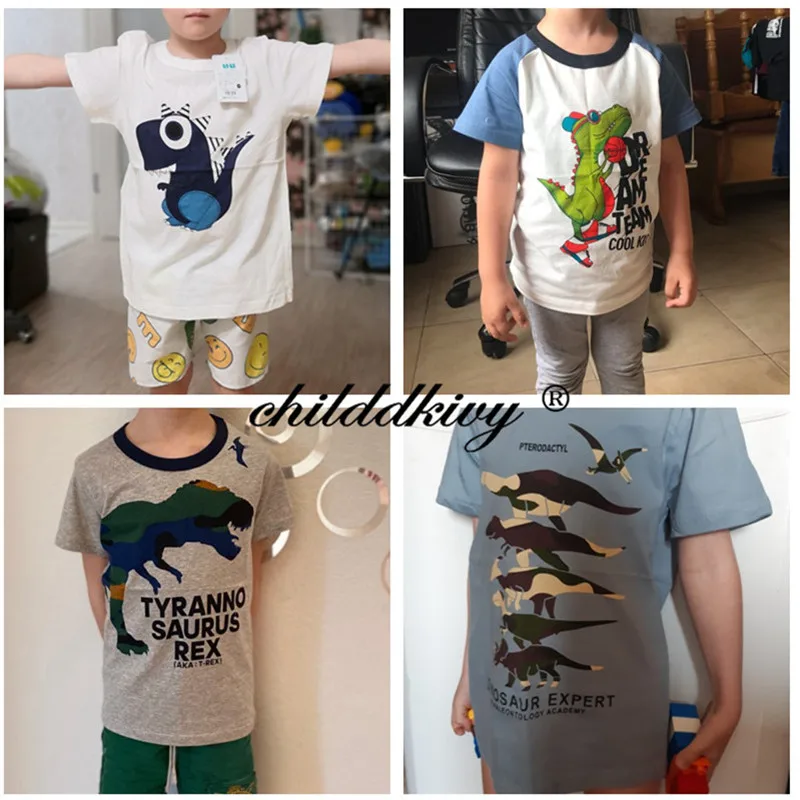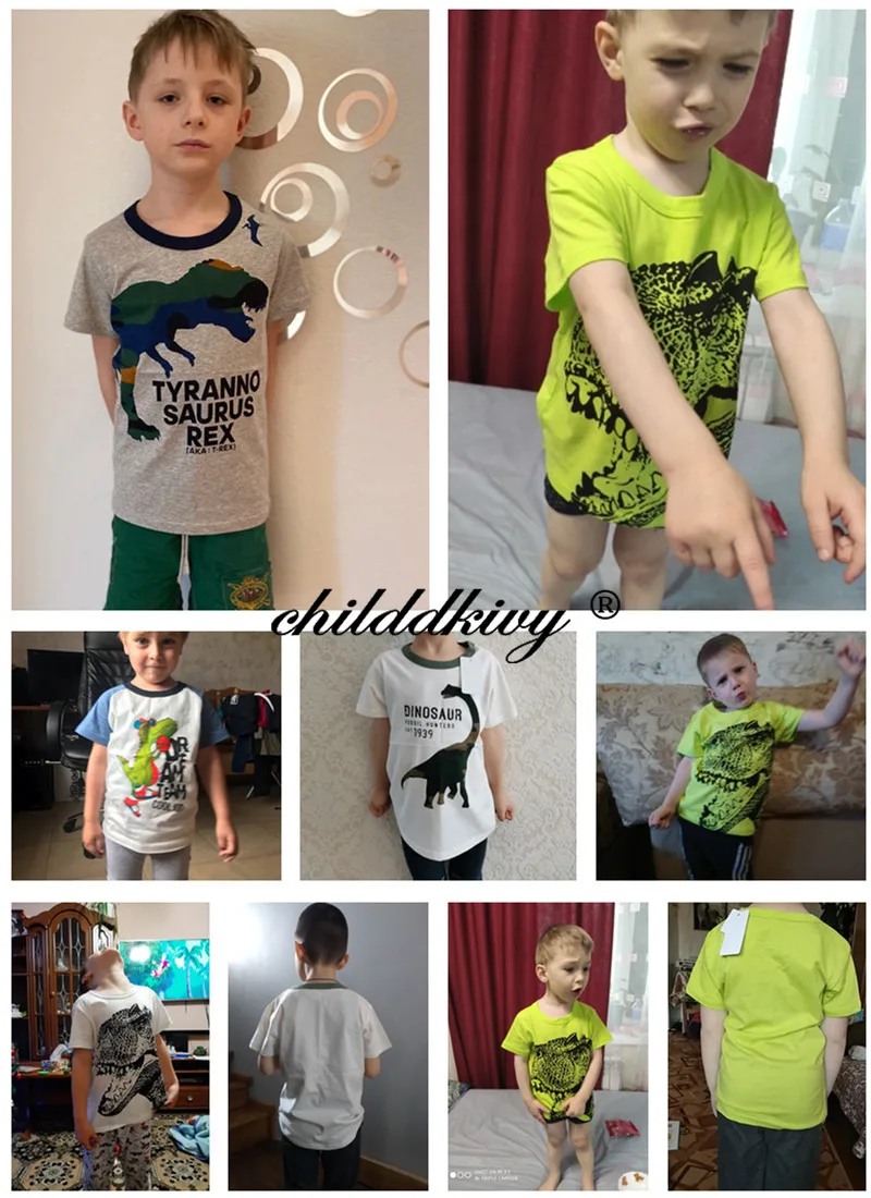 Футболки для мальчиков и девочек, детские футболки с принтом динозавров, летние футболки с коротким рукавом для мальчиков, хлопковые топы, одежда