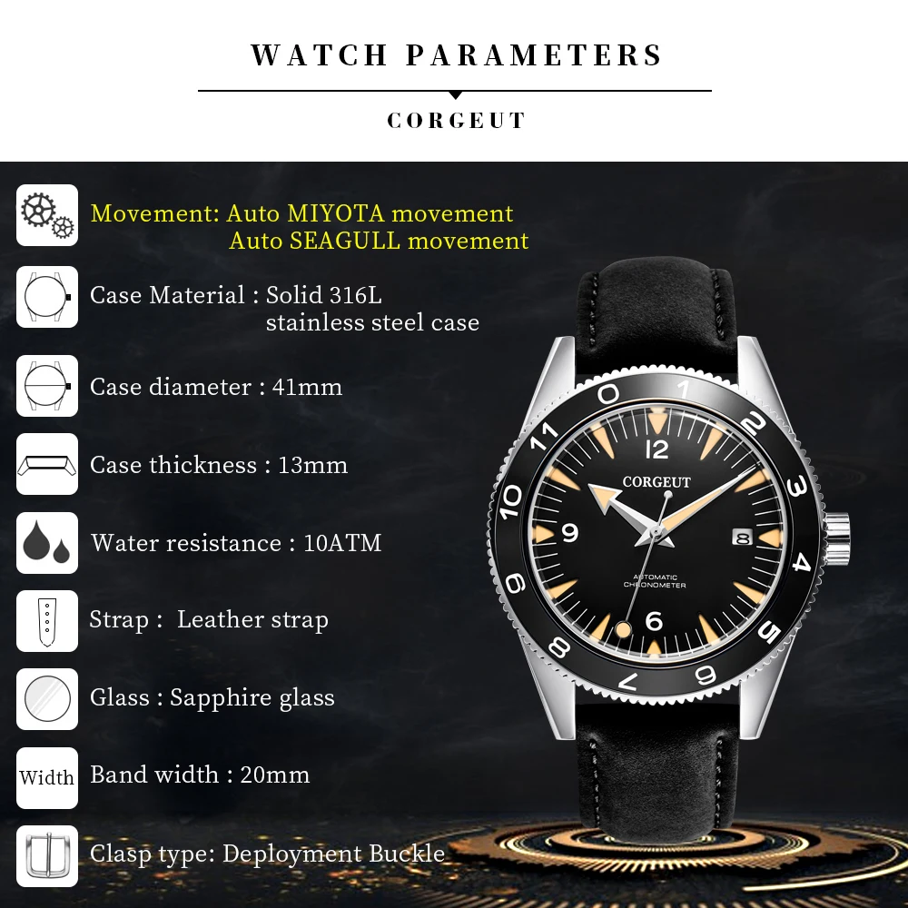 Часы наручные мужские механические с сапфировым стеклом, модные роскошные брендовые автоматические спортивные, MIYOTA