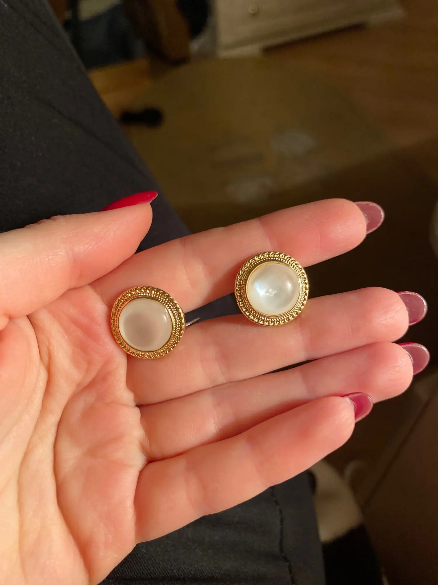 Миленькие аккуратные серёжки. Заказывала "жемчужные". Выглядят неплохо.