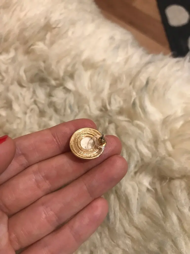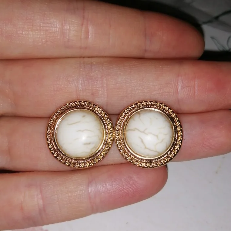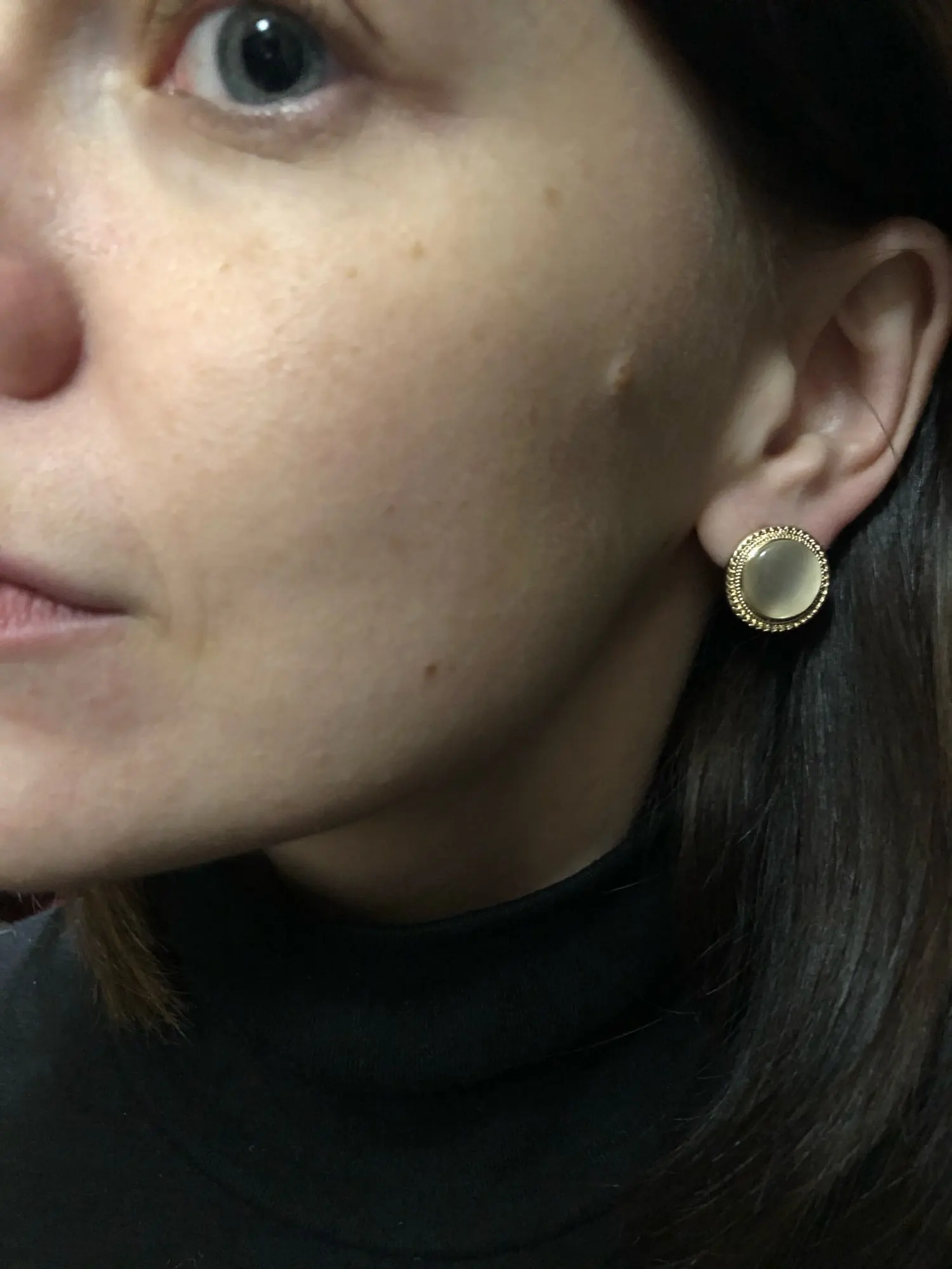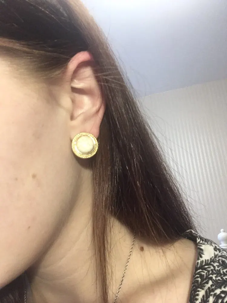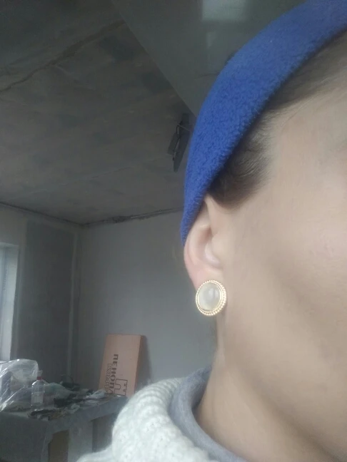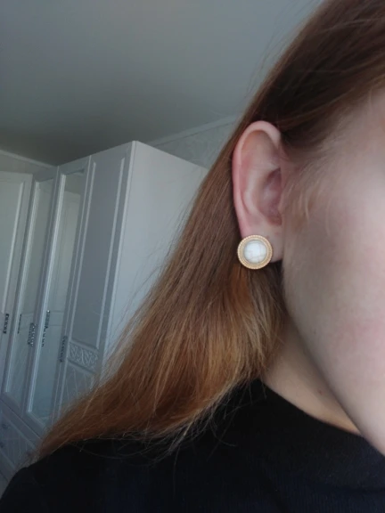 Хорошие серьги, слегка крупноваты. На одной серёжке небольшое темное пятно сбоку, не сильно заметно, но все же.