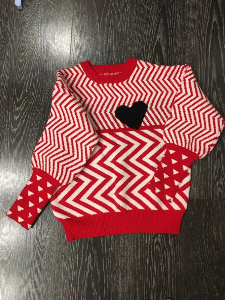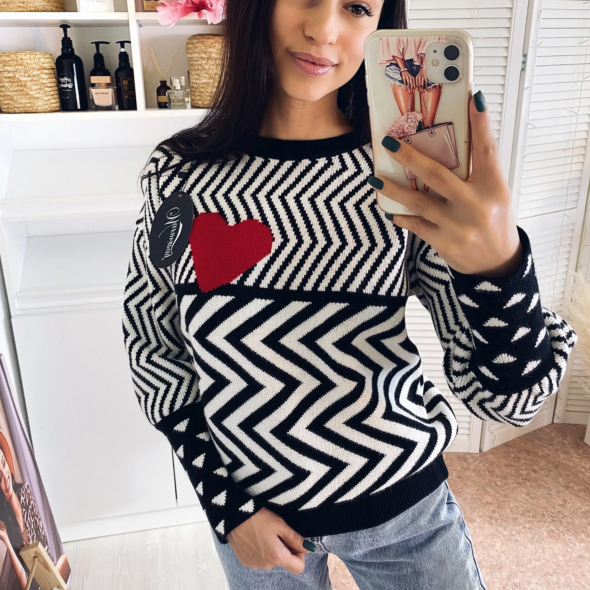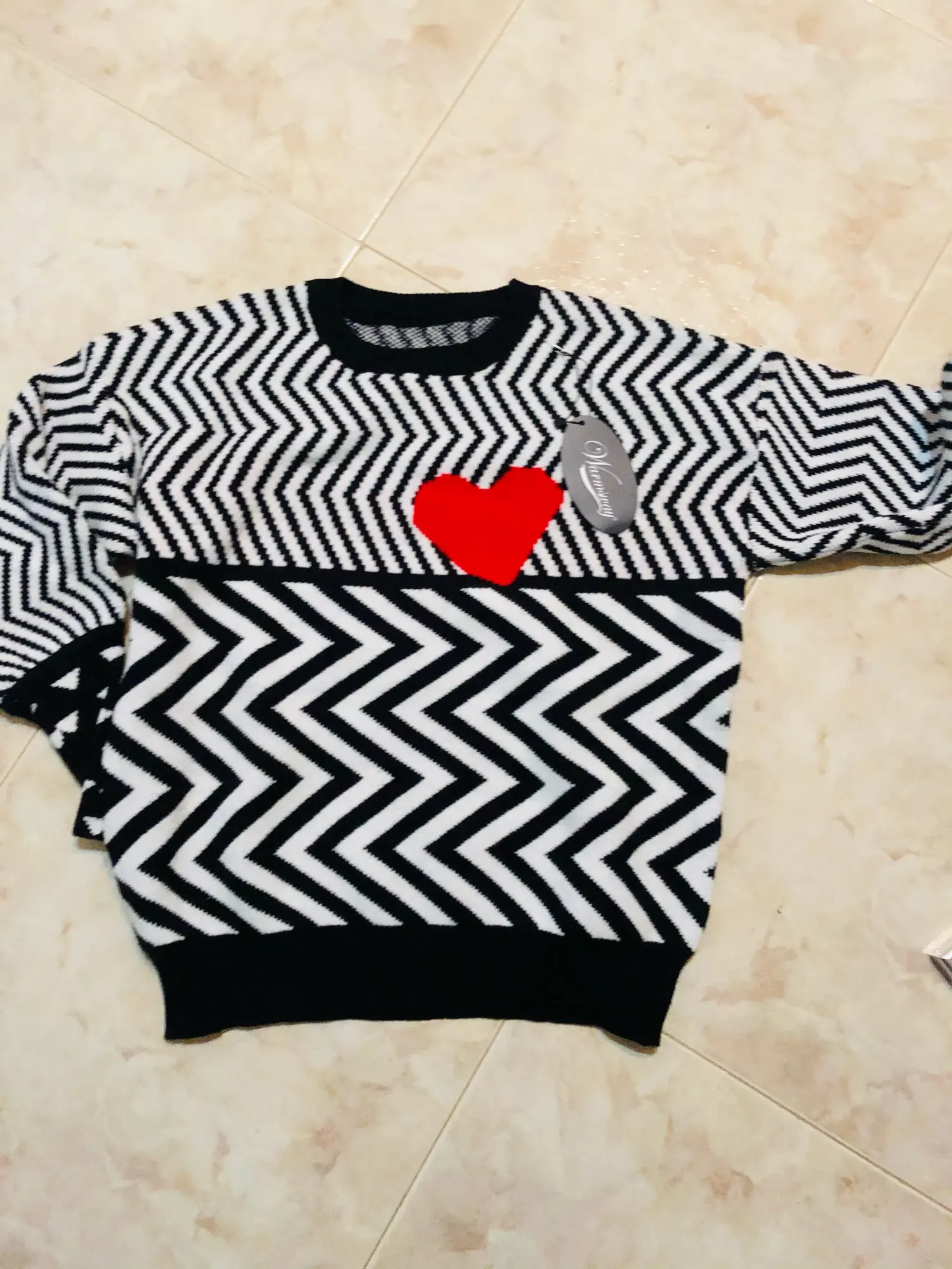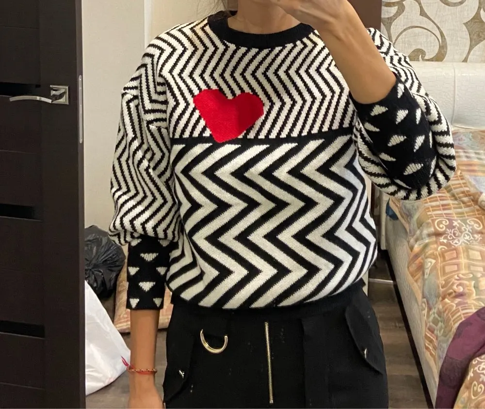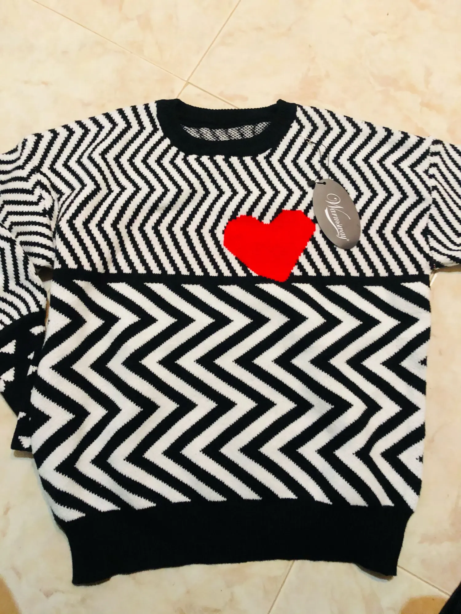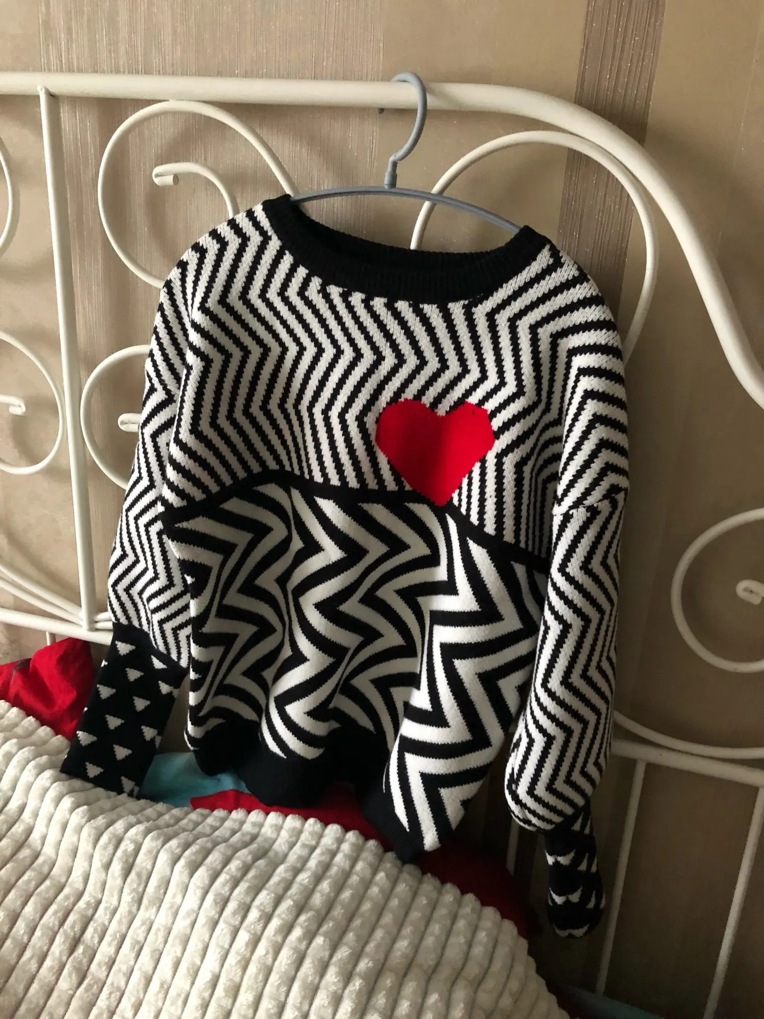 2022 осенне-зимние женские свитера с геометрическим рисунком сердца, топы с длинными рукавами, милые пуловеры, вязаный свободный джемпер C-005