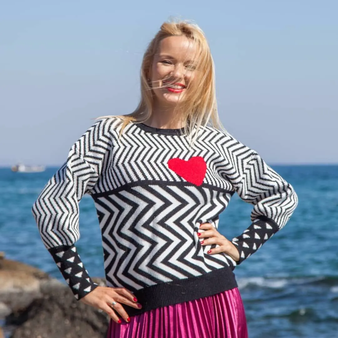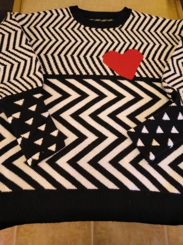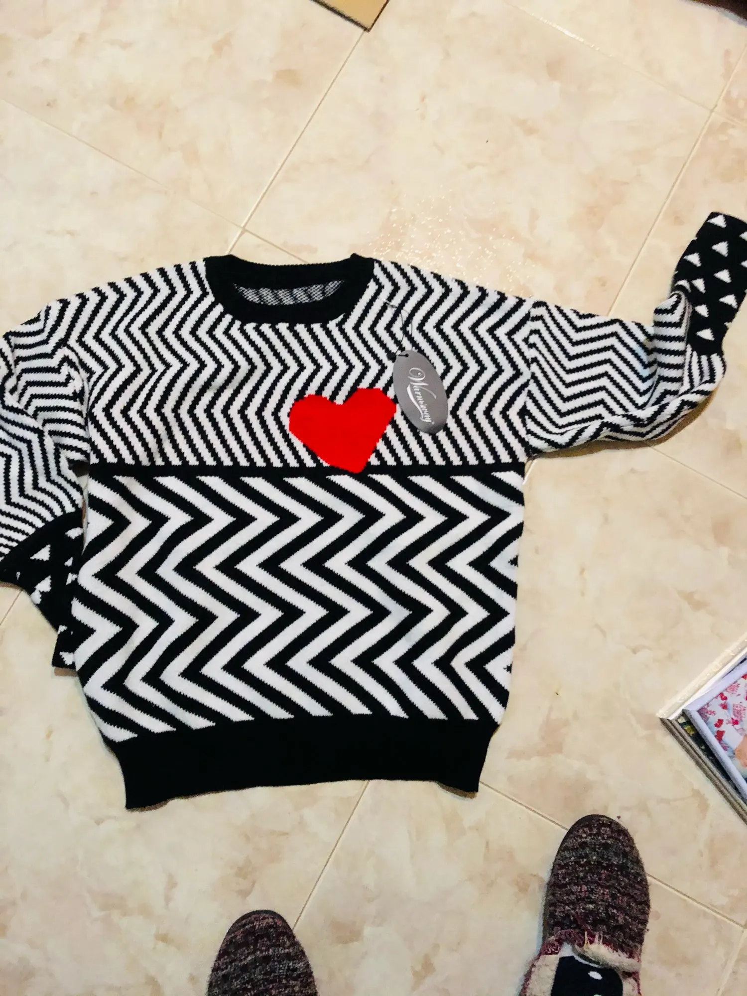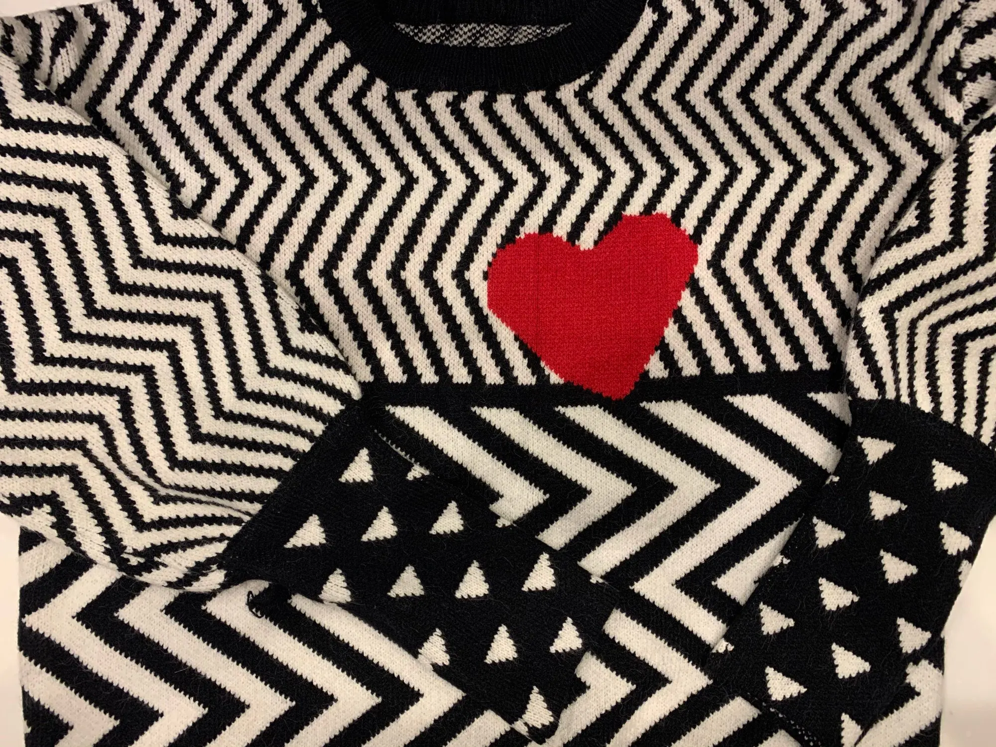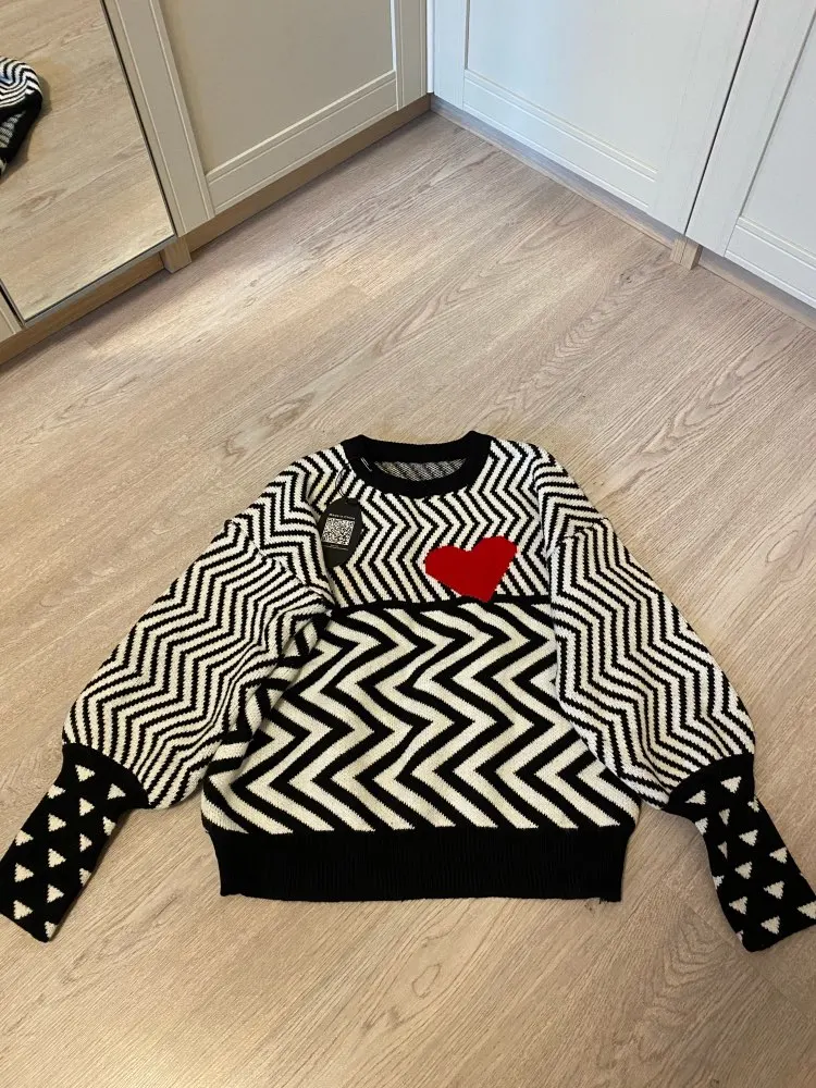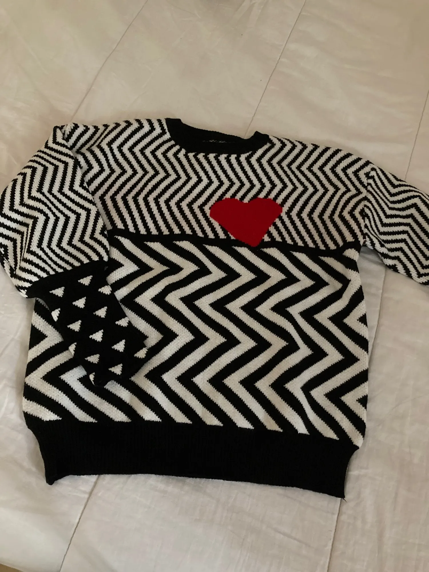 2022 осенне-зимние женские свитера с геометрическим рисунком сердца, топы с длинными рукавами, милые пуловеры, вязаный свободный джемпер C-005