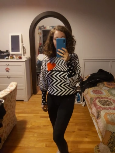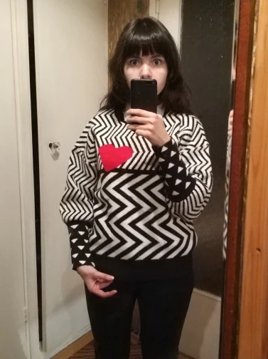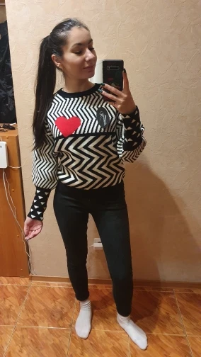 Я влюбилась в эту кофту. 100% синтетика, но очень прияная к телу. Товар дошел до Екатеринбурга дней за 10-12! Мой рост 158 см, рукава подошли идеально по длине, и сама кофта, учитывая мой рост, не короткая. Даже рисунок состыкован более или менее аккуратно