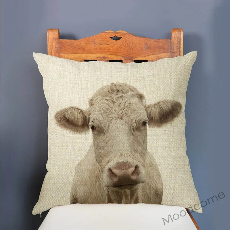Диванная подушка в винтажном стиле с принтом коровы и цыпленка, дек...