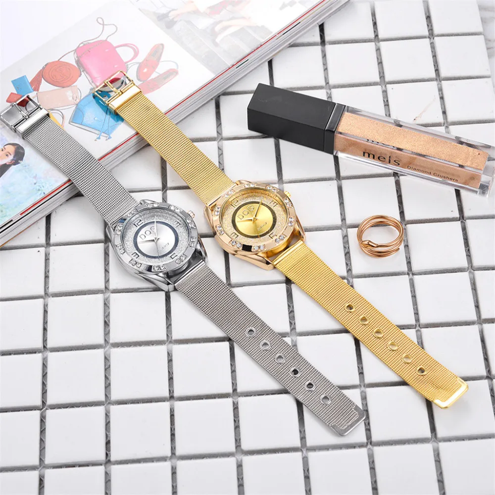Женские модные повседневные Аналоговые кварцевые наручные часы из нержавеющей стали с кристаллами, женское платье, индивидуальный романтический подарок на день рождения