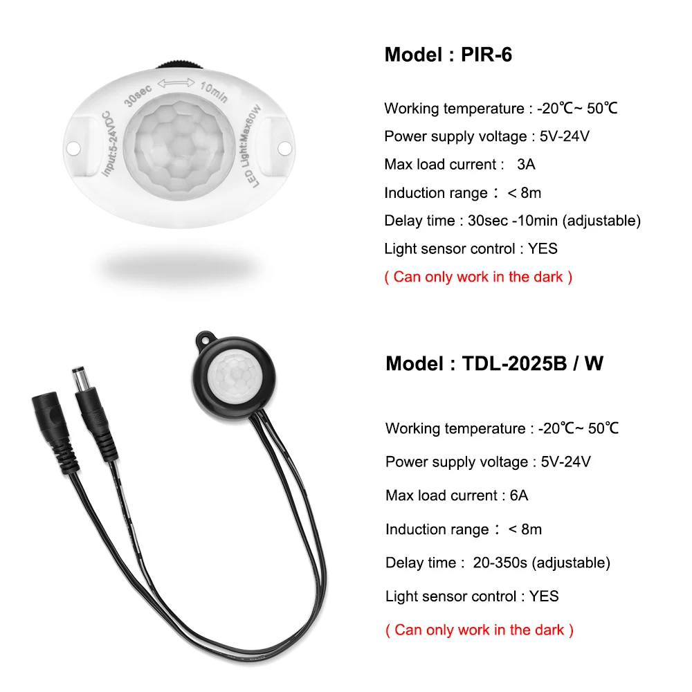 Инфракрасный датчик движения DC5V-24V 12 В с PIR-индикатором для светодиодных лент, разъем постоянного тока