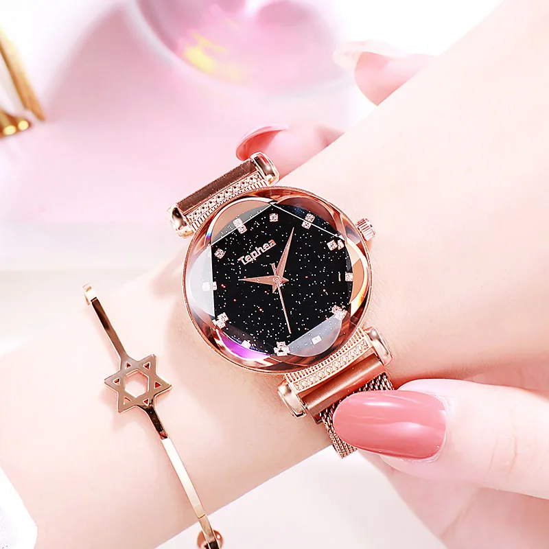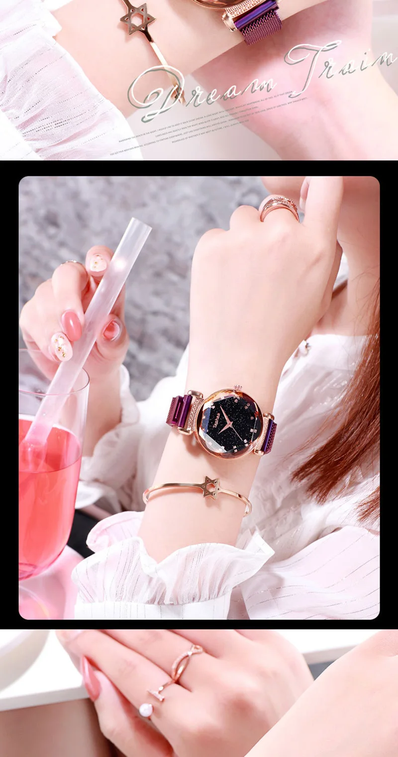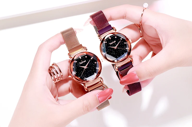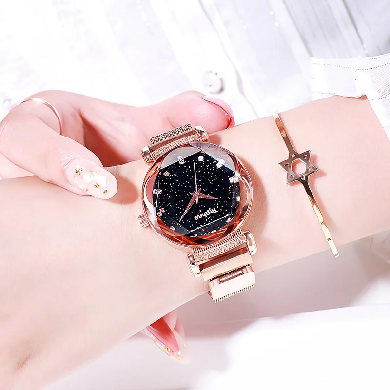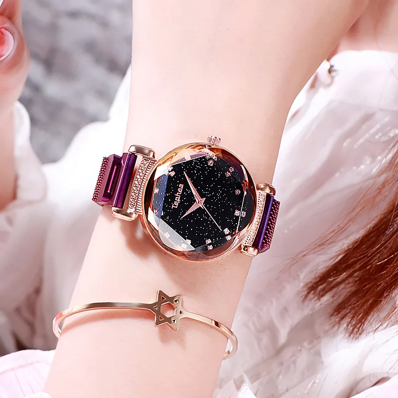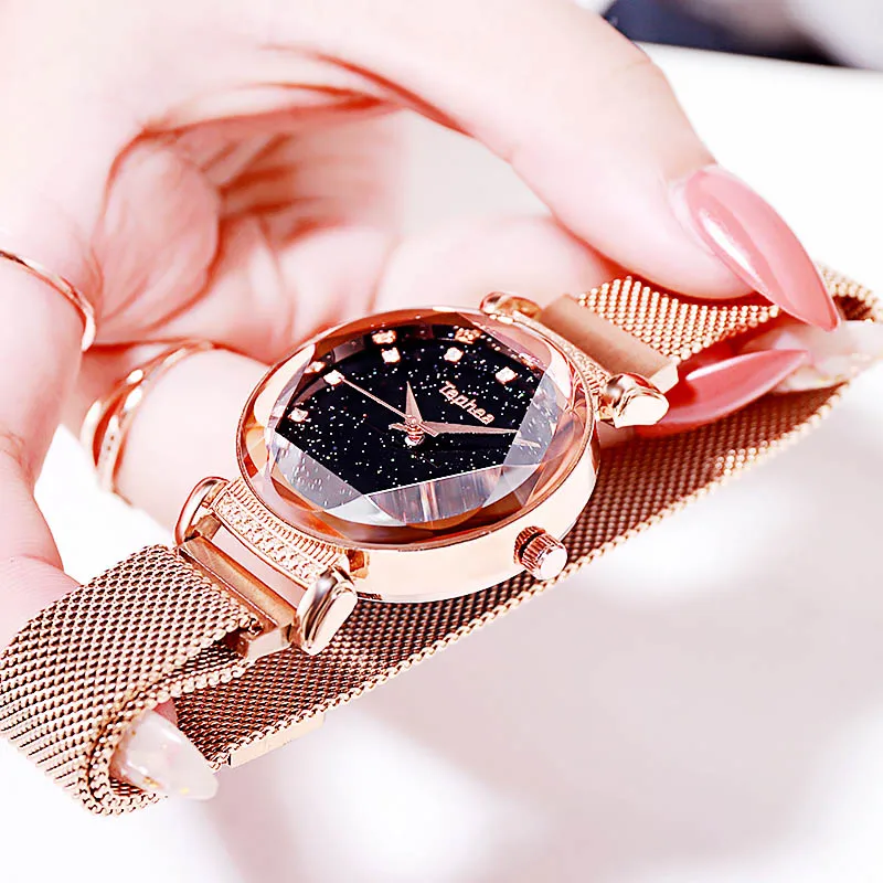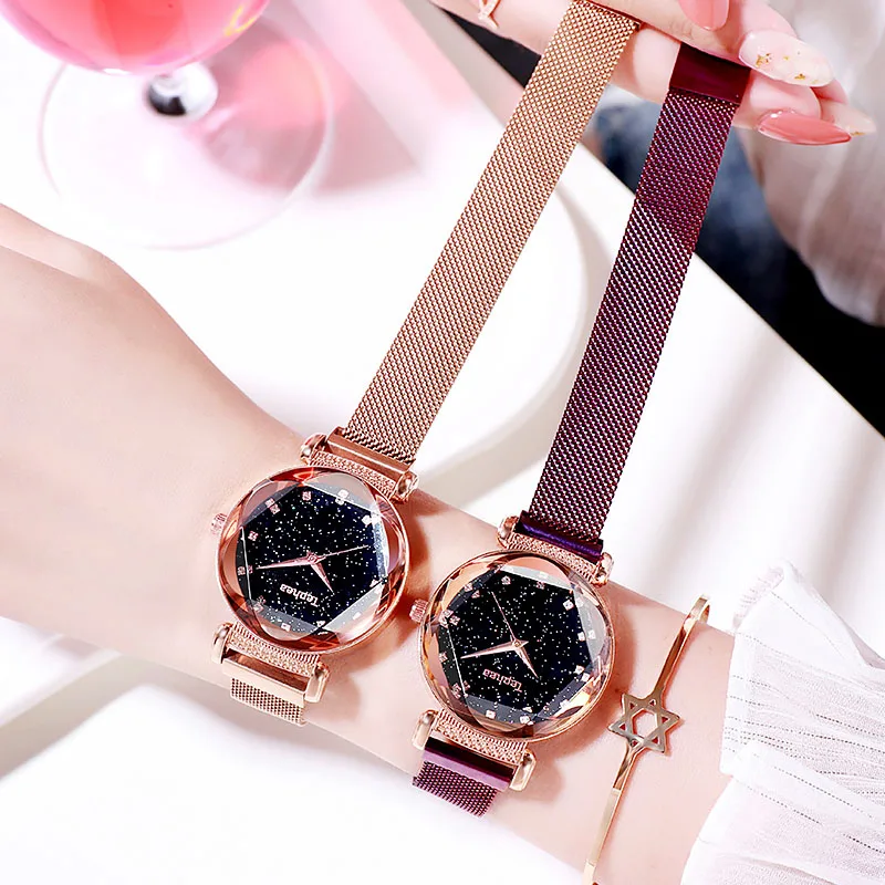 Модные часы Sky, Женские Простые кварцевые часы с браслетом, новые сетчатые магнитные наручные часы, Прямая поставка, relojes mujer, 2019