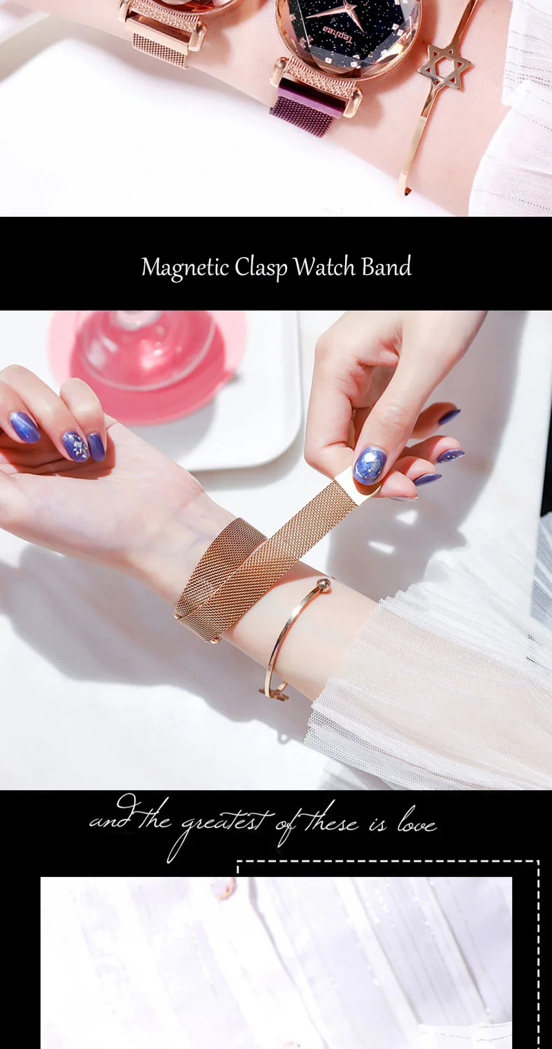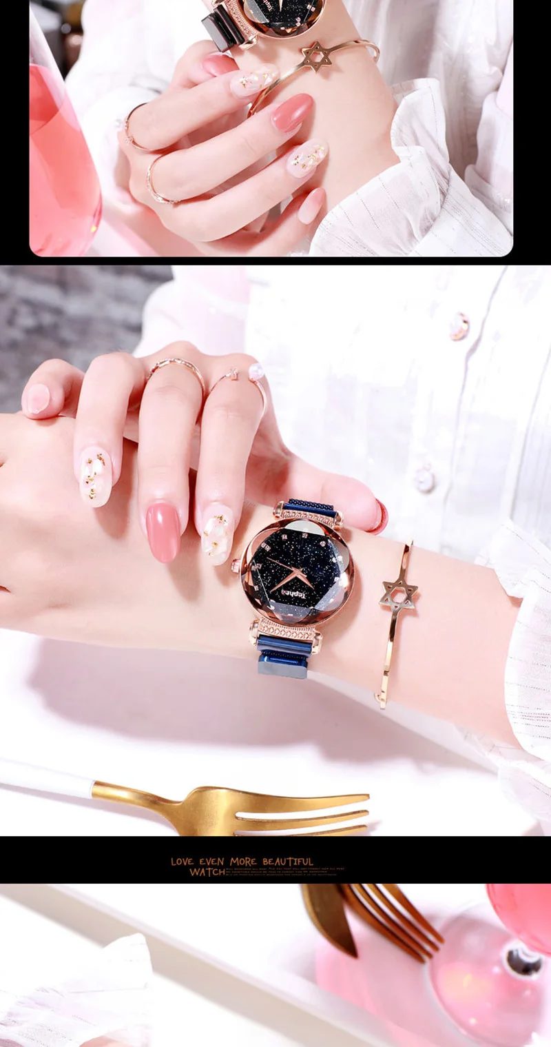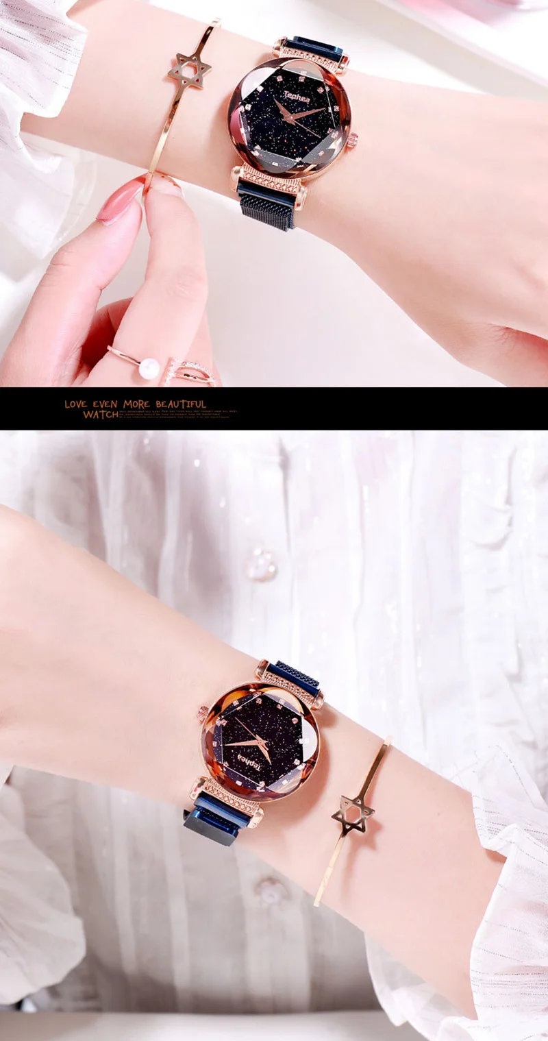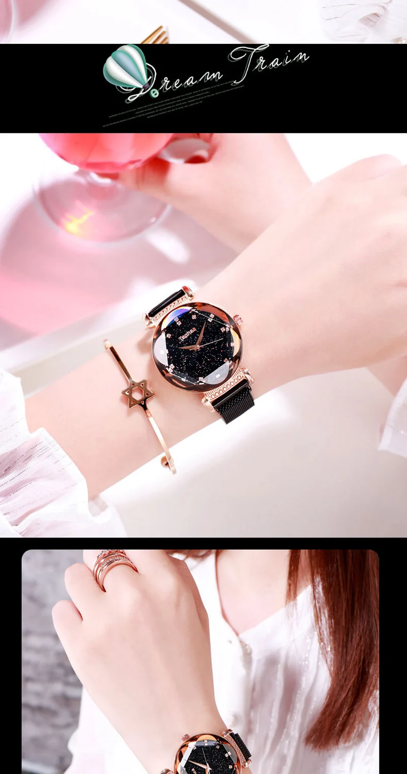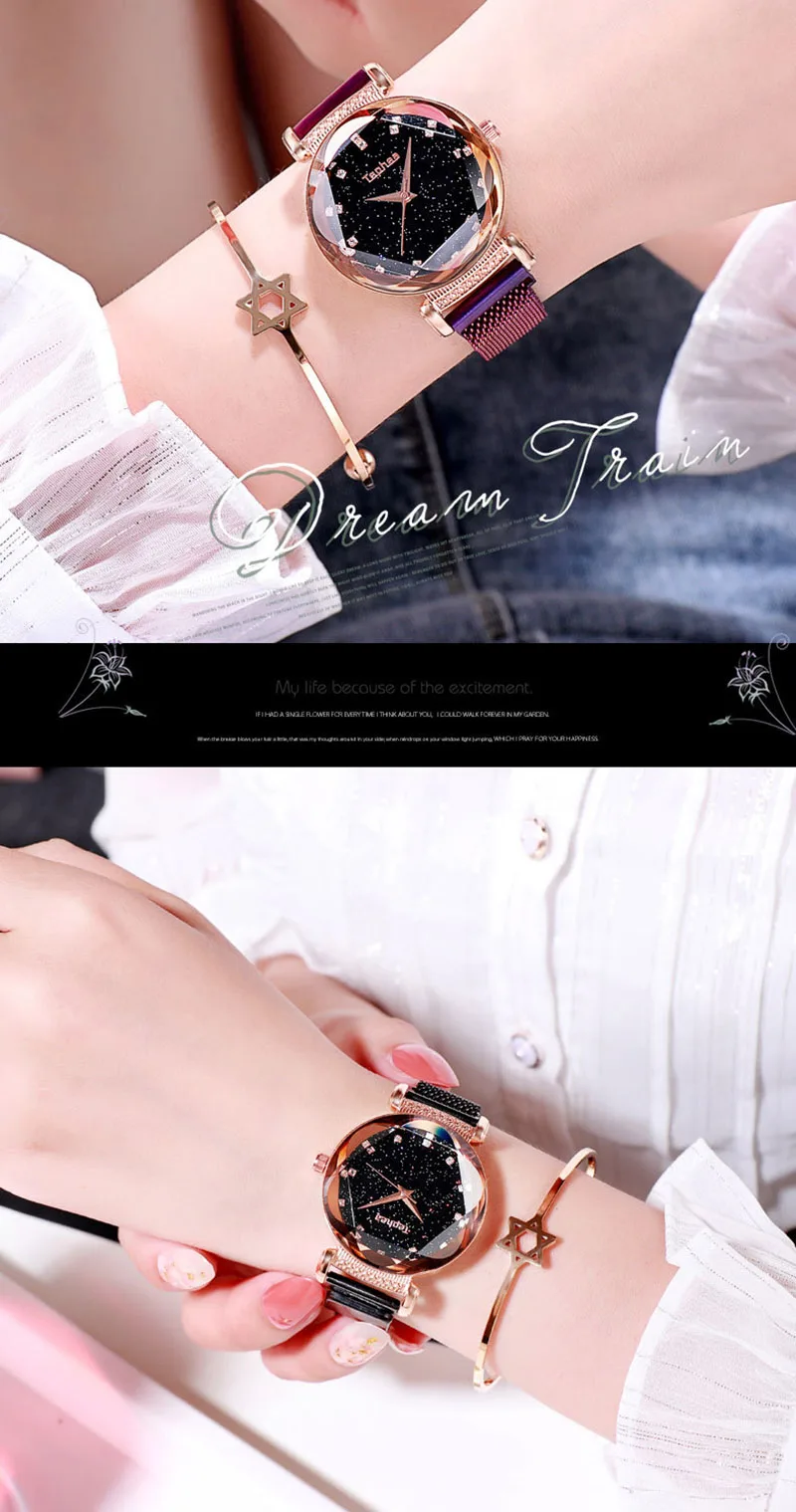 Модные часы Sky, Женские Простые кварцевые часы с браслетом, новые сетчатые магнитные наручные часы, Прямая поставка, relojes mujer, 2019