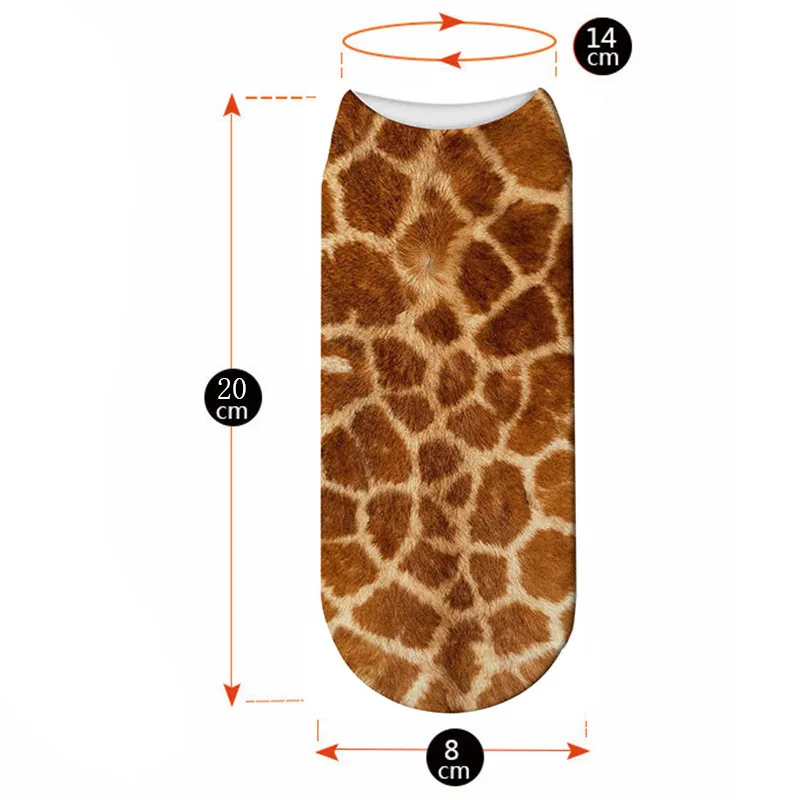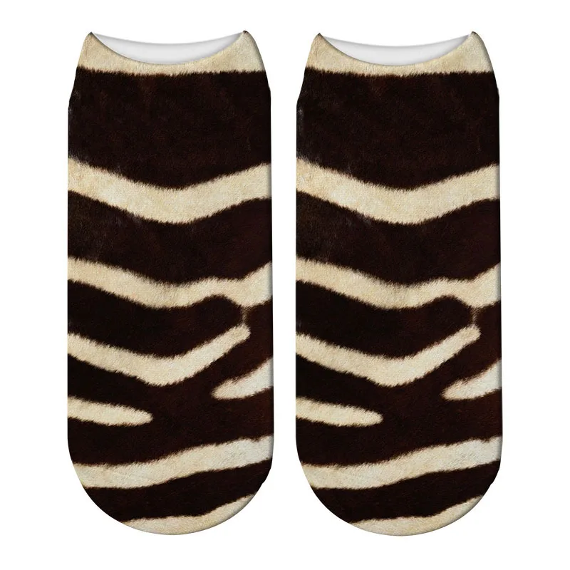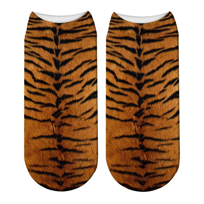 Новинка, 3D принт, носки с мехом животных, милые женские короткие носки с забавным тигром, повседневные хлопковые носки с изображением животных, зебры, леопарда, змеи, Kawaii