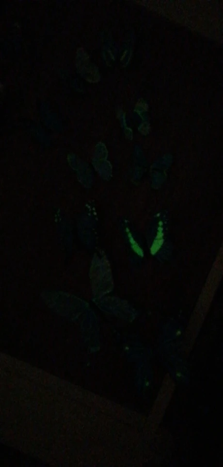 these butterflies are super cool and I was soo impressed...they shine soo brightly in the dark..if don't get there shine at night u should make sure that they are exposed to bright light before turning off the lights