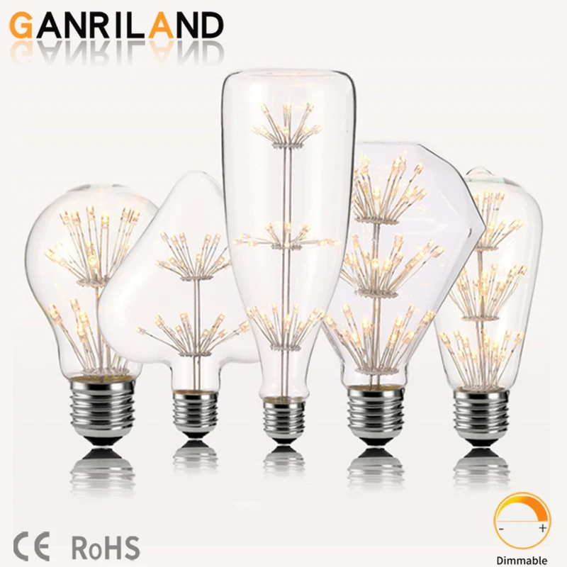 GANRILAND G125 ST64 A19 C35 Ретро звездное небо диммируемая Светодиодная лампа 3 Вт 2200 к E27 220 В бутылка вина декоративная Рождественская лампа лампочка Amouple LedОсобенности: