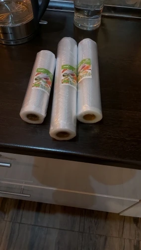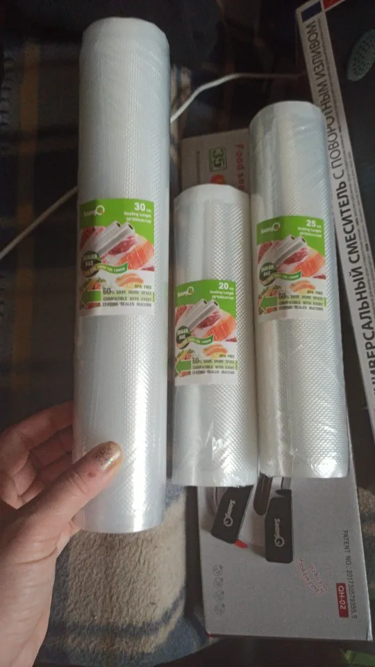 Взяла сразу два комплекта, один от самого маленького размера до 30 см, и 4 рулона 30 см, их при необходимости можно пополам пропаивать и 15 см пакеты получаются. В каждый комплект вложили мелкий ножик. Привез курьер Сдек до двери, через неделю после оформления заказа.