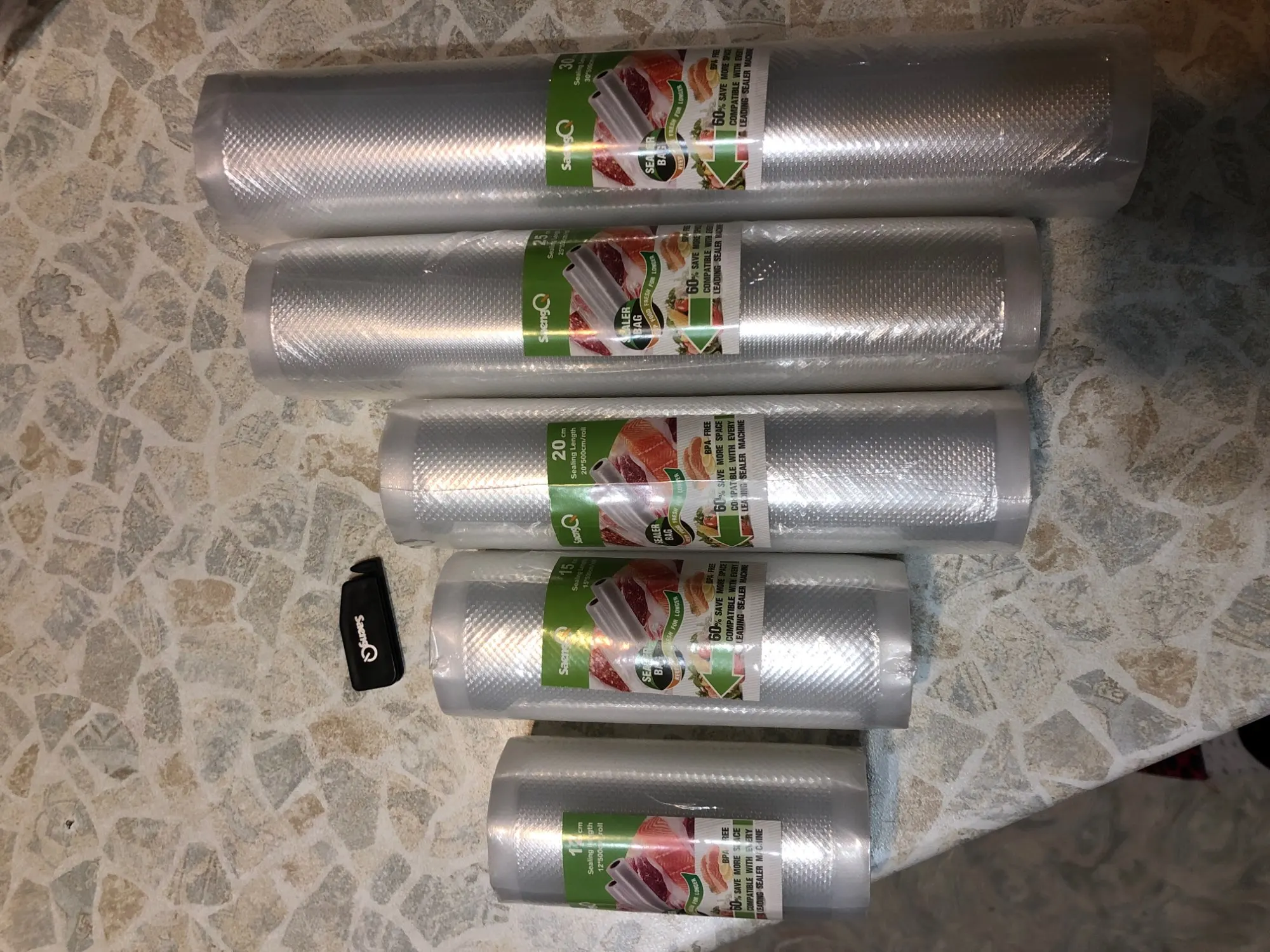 Пакеты для вакуумной упаковки пищевых продуктов saengQ LIFE, 12 + 15 + 20 + 25 + 30 см * 500 см, рулонылот