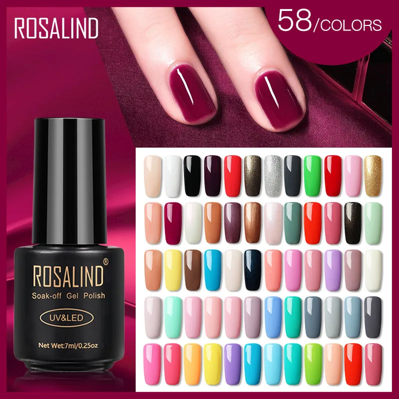 Гель-лак для ногтей ROSALIND, 7 мл, гибридный лак для ногтевого дизайна, полуперманентный семейный набор для маникюра, базовое и верхнее покрытие, Гель-лак