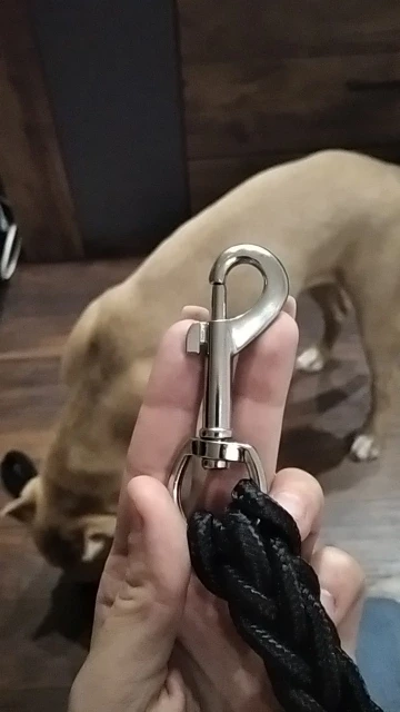 Сам поводок хороший, удобный и крепкий, но карабин не внушает доверия, слабенький для аргентинского дога