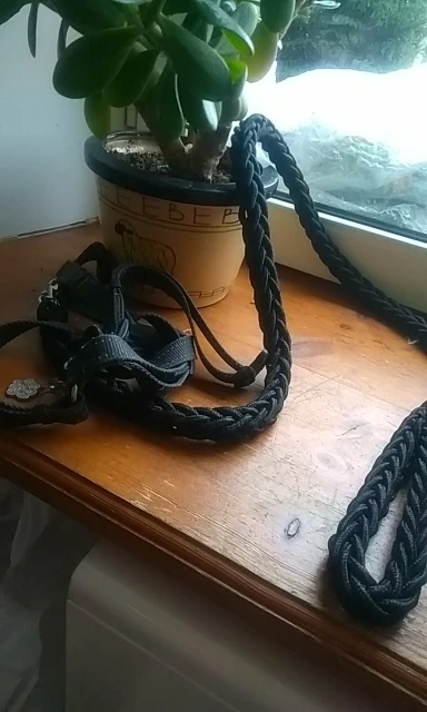 Поводок для большой собаки изготовлен из плетеного нейлонового шнура, как на фото. Я получил правильный товар, цвет и количество заказанных. Спасибо :)