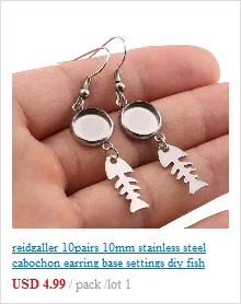 Reidgaller, 5 пар сережек из нержавеющей стали, 10 мм, кабошон, комплектующие для сережек сделай сам