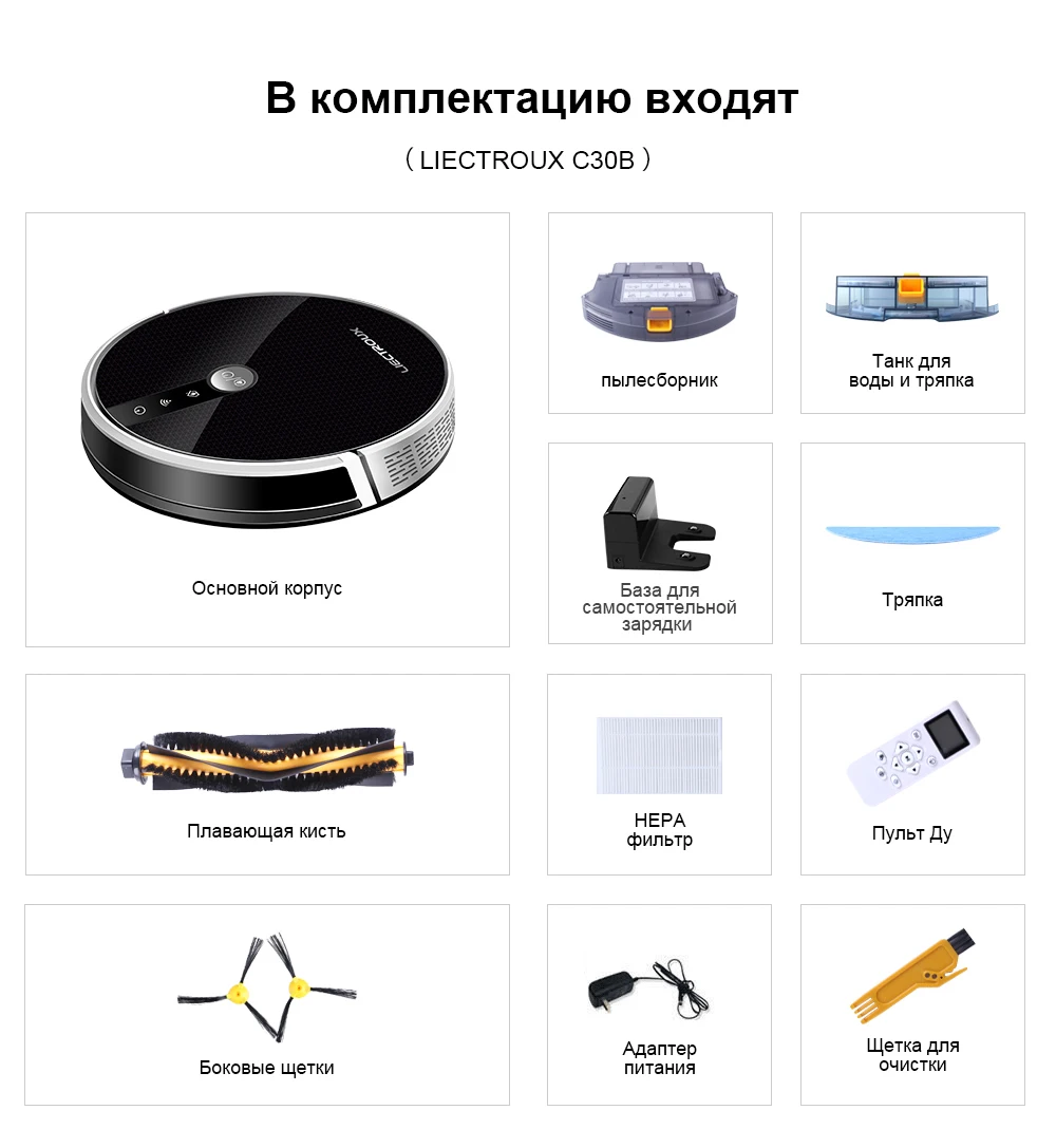 (Отгрузка со склада в России)LIECTROUX C30B умный робот пылесос для дома, моющий пылесос, Дистанционное управление Smart APP, моющий пылесос для дома, Подметание и влажная уборка, 5 кПа всасывания, робот пылесос моющий