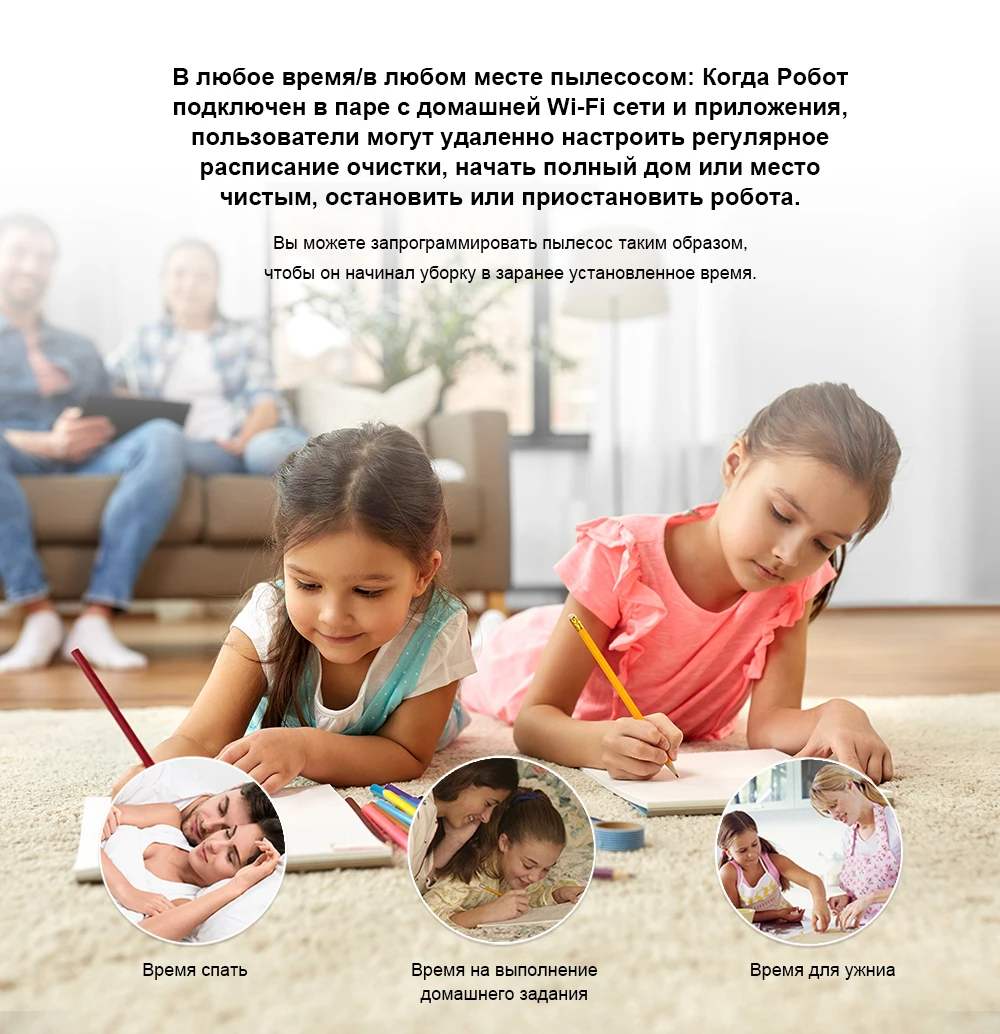 6. Электрический резервуар для воды обеспечивает даже просачивание воды. Просачивание воды автоматически останавливается, если робот перестает работать. Огромный объем воды 350 мл обеспечивает непрерывную влажную уборку до 100 минут.