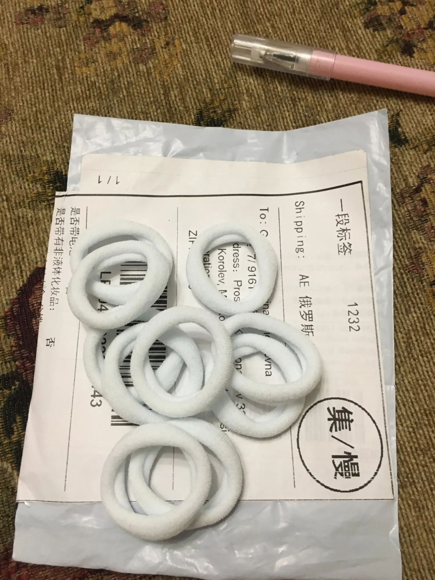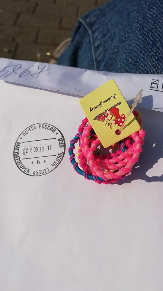 Товар положили в почтовый ящик , эластичные хорошие резинки , но думала что диаметр будет больше оказалось 2-3 см диаметр
