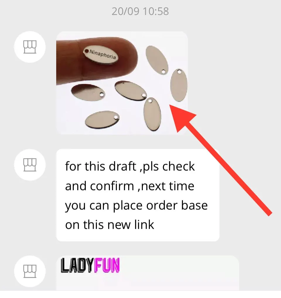 Продавец написал мне и сказал, что они прислали мне другой размер и форму. Изображение их сообщения с образцом того, что я подавил, показано здесь. Но они не прислали мне форму, как образец, с которым я связался. Таким образом, многие амулеты, последняя буква свисает с края и почти не видна. Там также есть еще одна буква, которая выглядит так, будто она отсутствует в верхней части «h» выглядит больше как «n». Посылка была доставлена очень быстро!