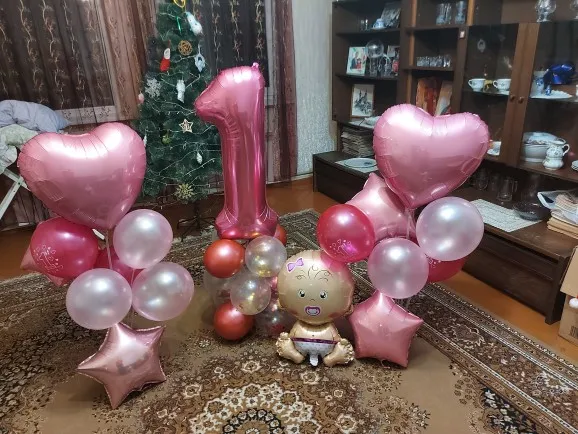 снижаю одну звезду, поскольку на фото нарисованы как будто шары на стойке... из-за картинки стойку не заказывала дополнительно.... доставка затянулась больше, чем на 1.5 месяца, хотя якобы через неделю 6.12 были уже в Латвии. в Беларусь в Минск пришли 21 января...день рождения дочки был 6.01, поэтому опоздали на праздник.... каждый шар из фольги был в отдельной упаковке, цветные в отдельном пакете и прозрачные в отдельном. все целые .