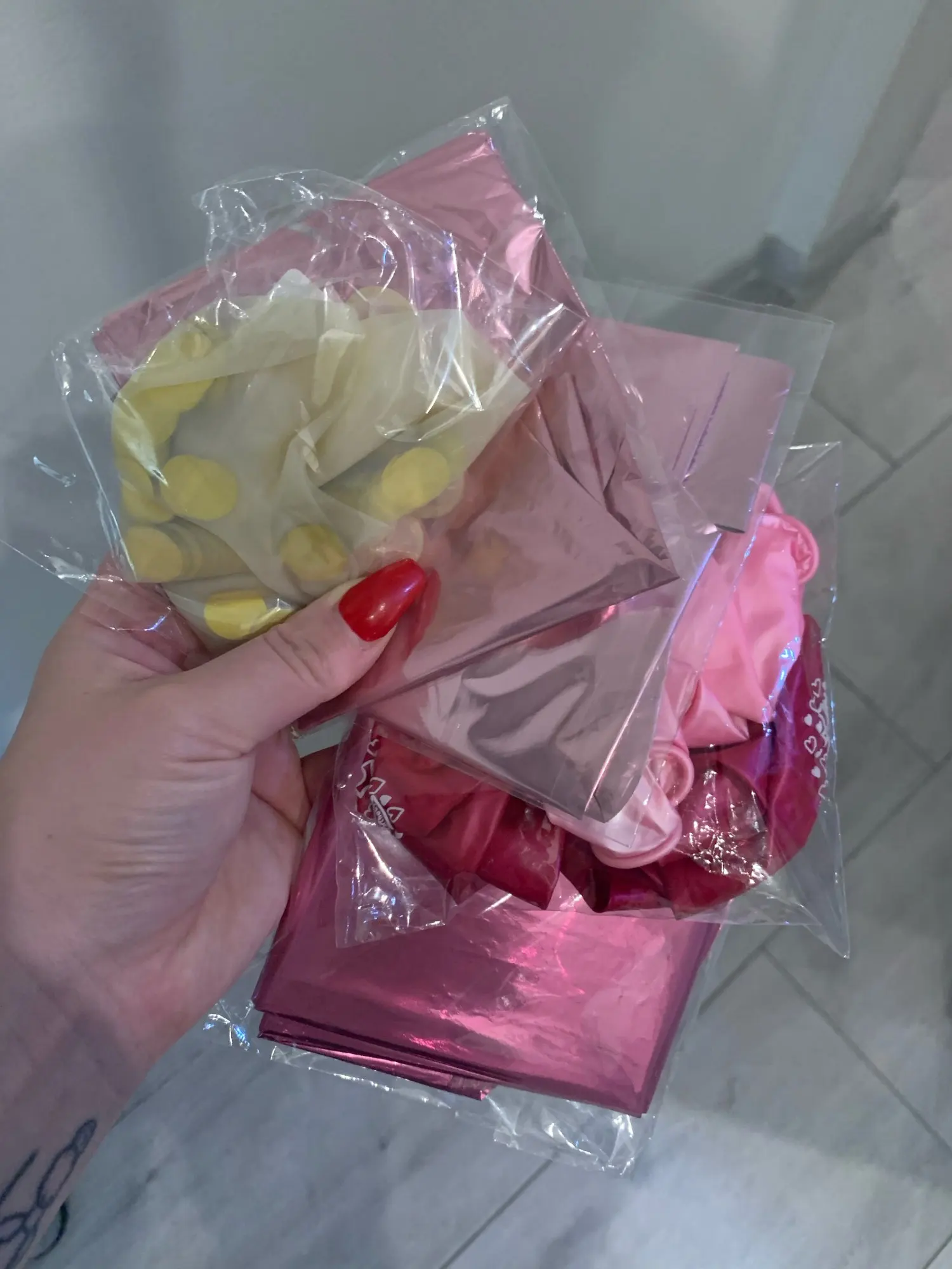 В место голубой надписи положили розовую. Но в подарок положили шар звёздочкой, можно было и побольше шариков подарить)), заказ большой делала, посмотрим дальше, ещё не всё пришло)))