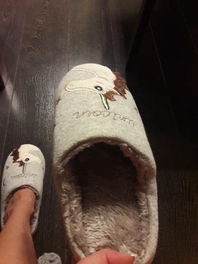 Тапочки пришли за 3 недели до СПб. Хорошего качества, мягкие, теплые. Выглядят очень мило, хорошо подойдут для подарков.