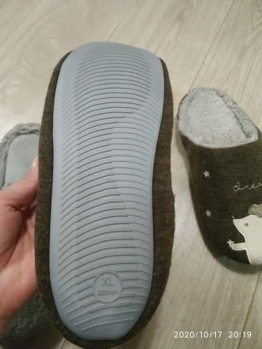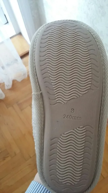Очень классные, тёплые и удобные тапочки! На свой российский 40 заказала по сетке 42. Как видно на фото, можно смело брать на 1-2 размера меньше (то есть согласно своему реальному размеру). Но я специально заказала побольше, чтобы было просторно ноге. Фото сделаны после месяца носки, можно увидеть - эффект памяти стопы и правда есть. Никакие нитки не лезут, я очень довольна заказом! И продавец хороший - после получения посылки у меня не было времени зайти в Алиэкспресс и отметить, что заказ пришёл. Так продавец сам продлил мне гарантию защиты покупателя ещё на месяц, видимо, подумав, что тапочки ещё не дошли. Сервис магазина отличный!