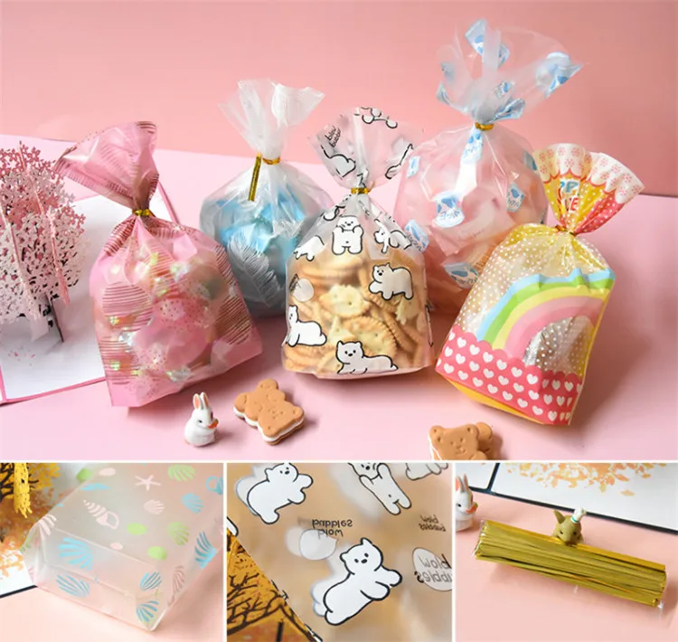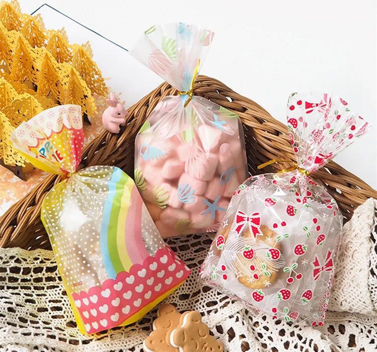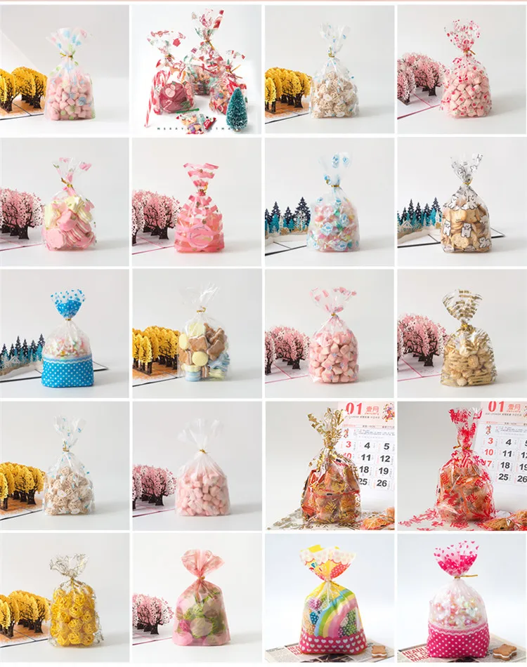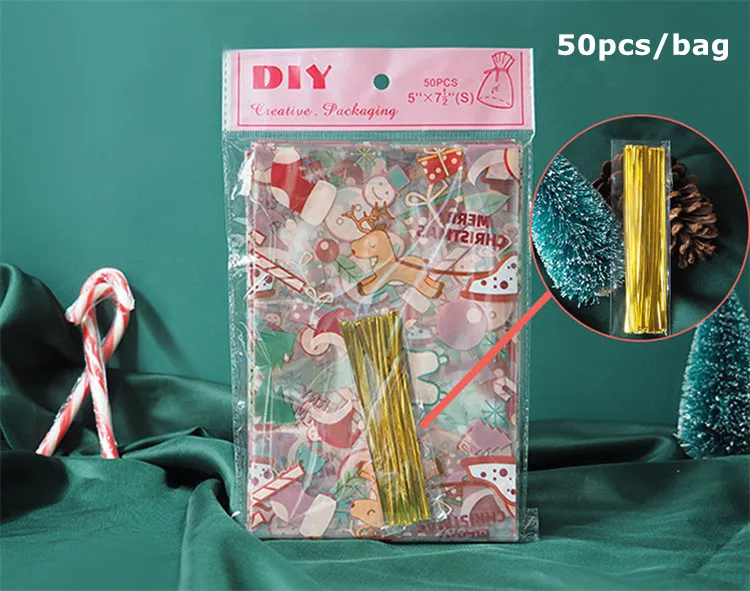 50 шт сумки + Кабельные стяжки Открытый Топ пластиковая подарочная упаковка мешок DIY для выпечки печенья конфеты шоколадный картофель фри X-mas свадебные мешки