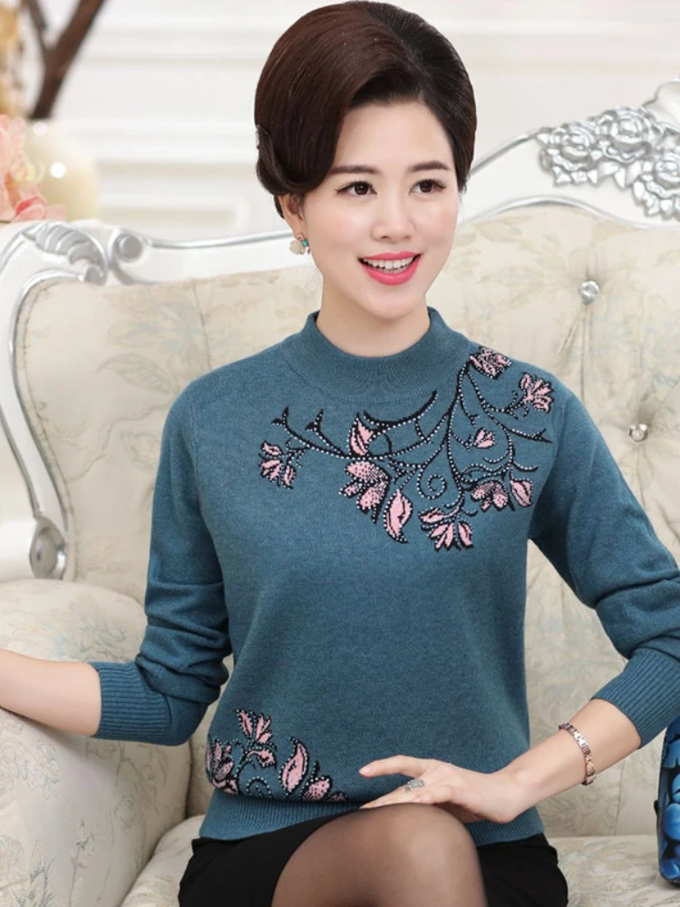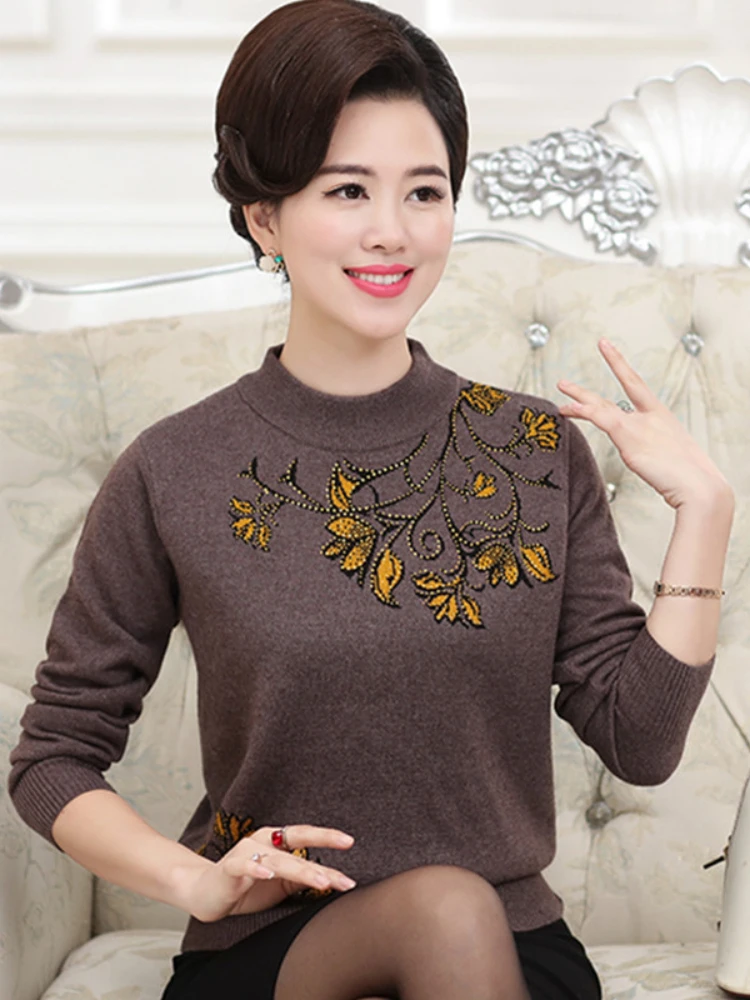 Весенний новый свитер, женские вязаные топы 2019, Женская Повседневная водолазка размера плюс, пуловер, Женские винтажные свитера со стразами
