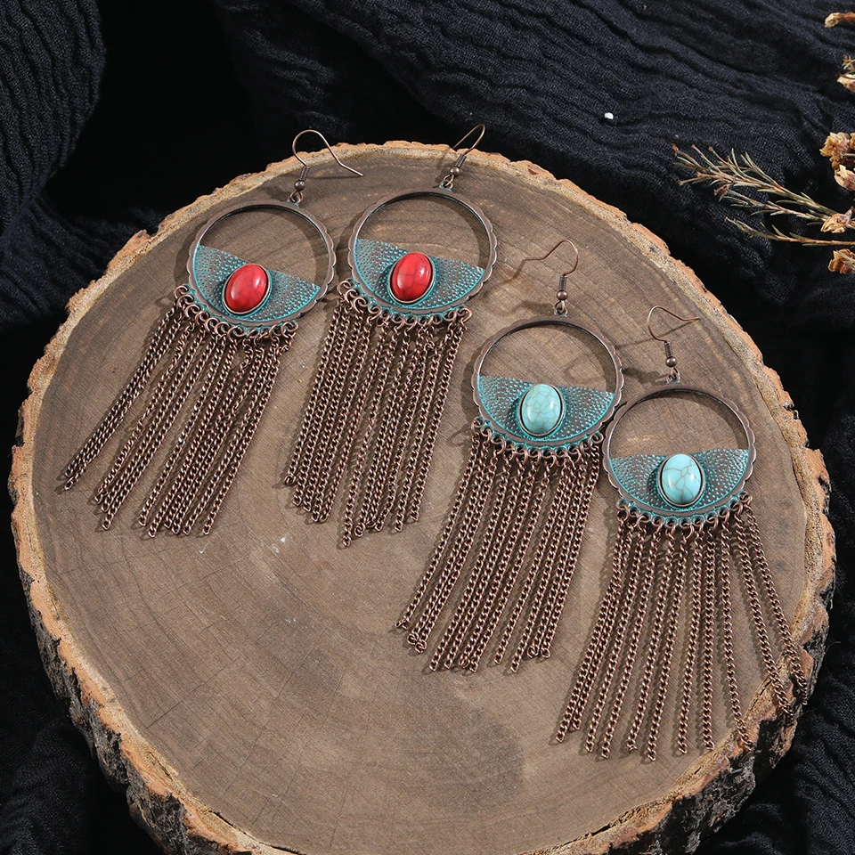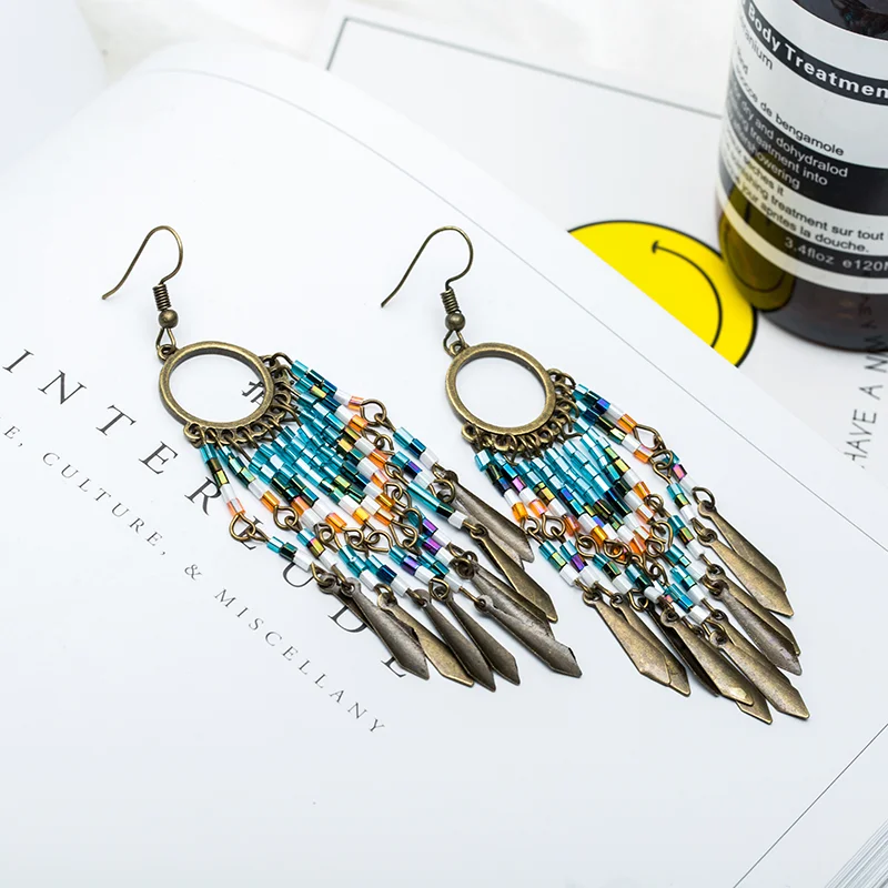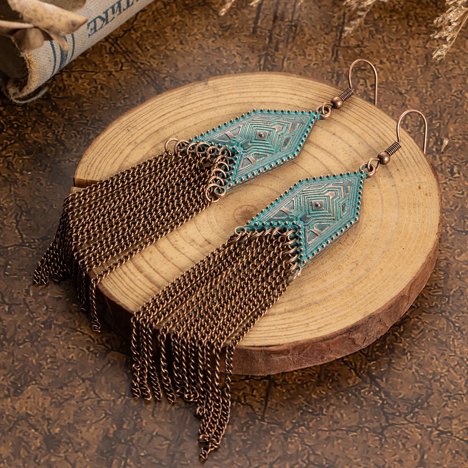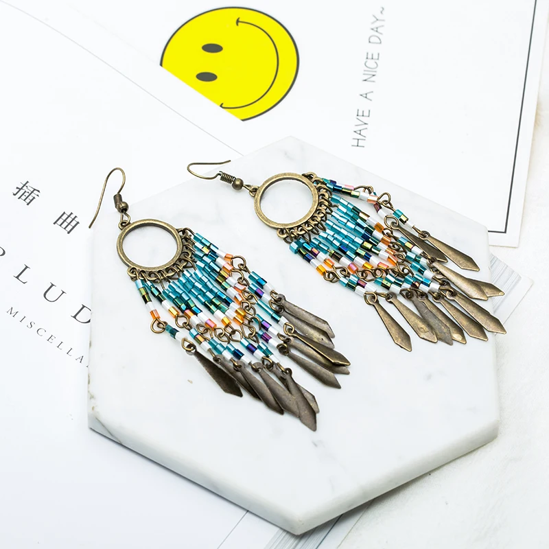 Женские винтажные серьги-подвески, богемные, этнические, с кисточками, свадебные аксессуары для невесты, ювелирные изделия, 2019