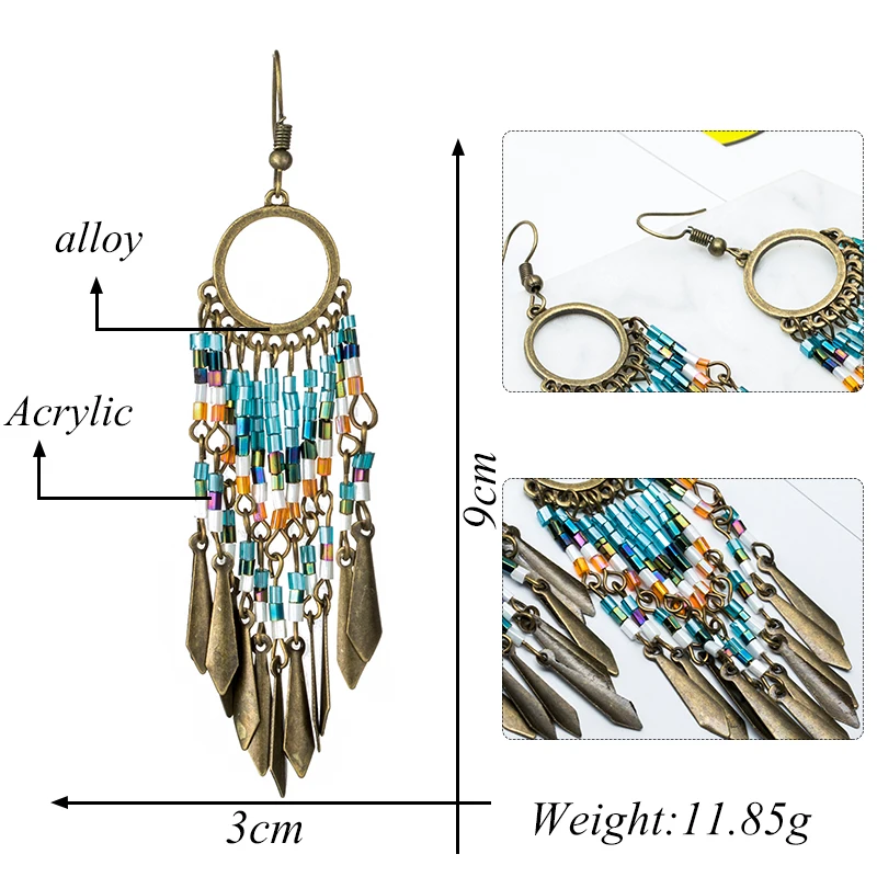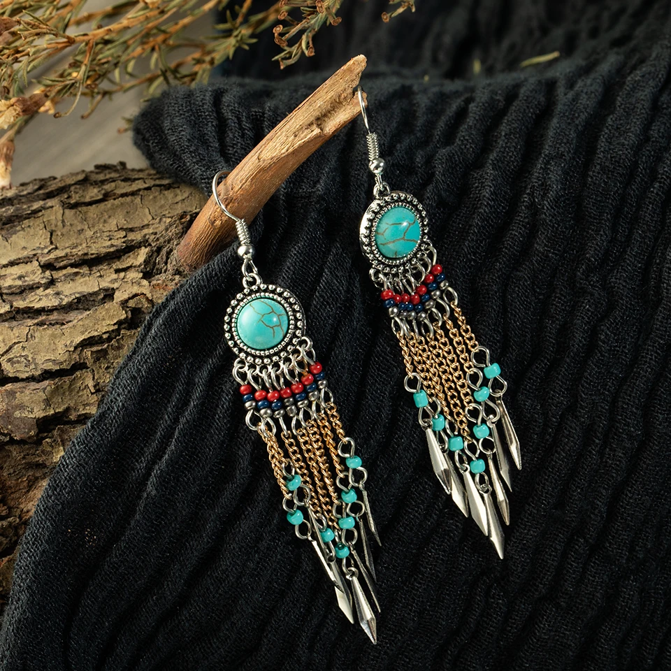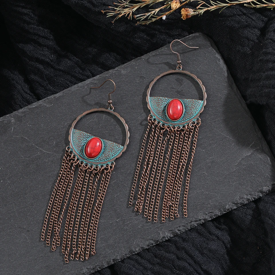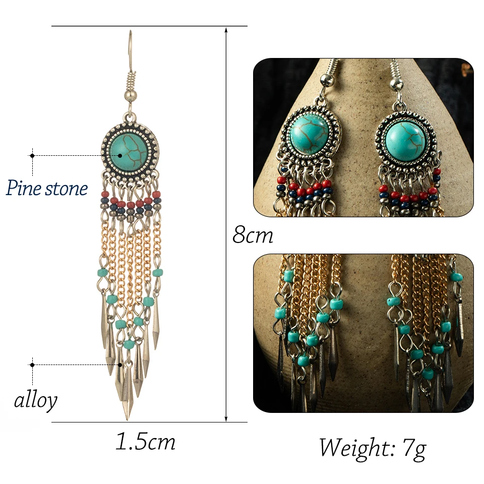 Женские винтажные серьги-подвески, богемные, этнические, с кисточками, свадебные аксессуары для невесты, ювелирные изделия, 2019