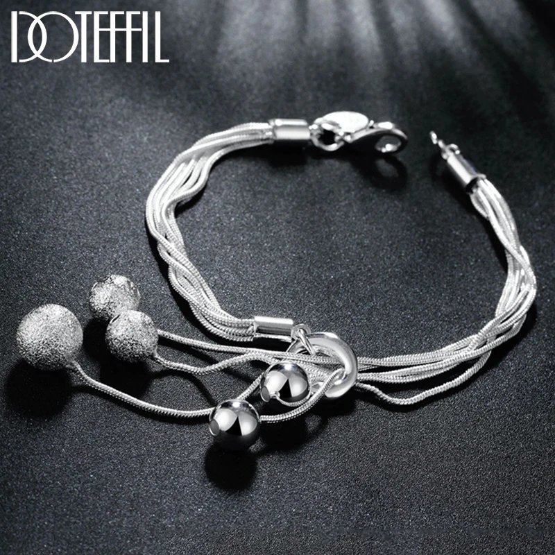 DOTEFFIL 925 стерлингового серебра змеиная цепочка гладкие матовые бусы кулон браслет для женщины очарование Свадьба Обручальное модное ювелирное изделие