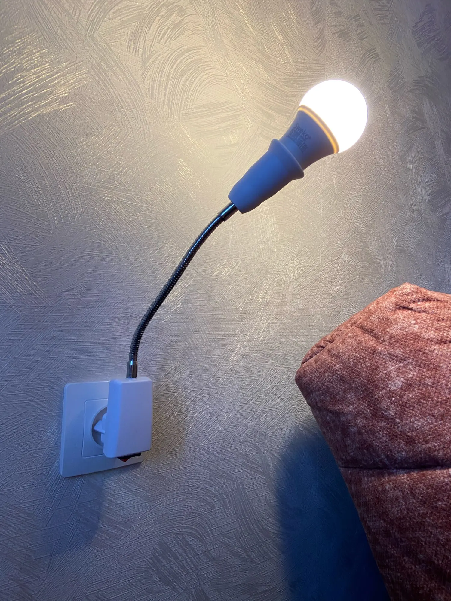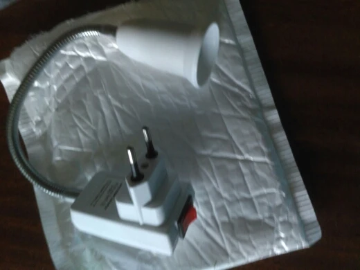 Дошёл ночник за 53 дня до Сургута (ХМАО). Вкрутил лампочку с цоколем Е27 - работает. Ночник простейшей конструкции, то, что надо! Гибкий вал взял бы по длиннее немного... в принципе, хватает. Вилка была чуть погнута - исправил сам.