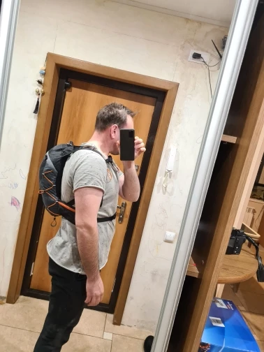 La mochila es de buena calidad. No pesa nada y tiene suficiente capacidad para lo justo para ir de rutas cortas. Eso sí, a mí no me cabe. No soy pequeño, mi contorno de pecho es de 126 cm, pero simplemente abriendo al máximo las asas no hay manera. Recomendable para personas delgadas.