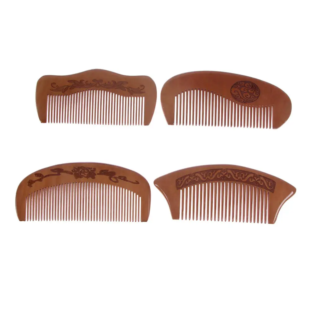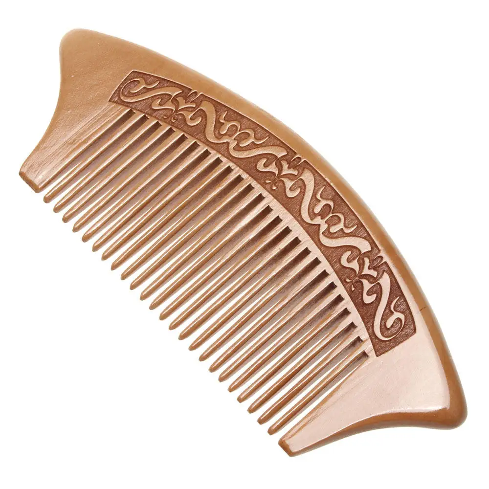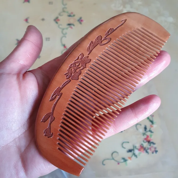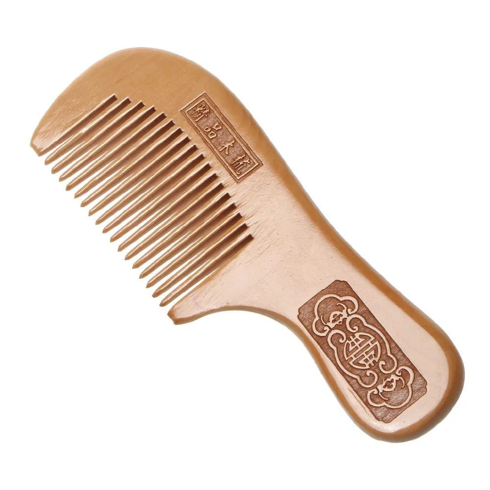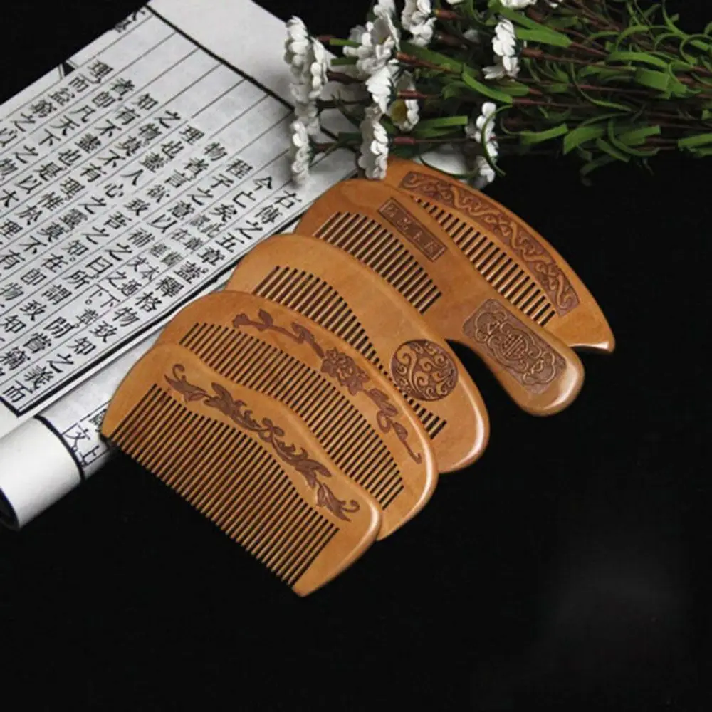Расческа из натурального персикового дерева с гравировкой на близких зубцах, Антистатическая, 1 шт., инструмент для ухода за волосами, массажа головы