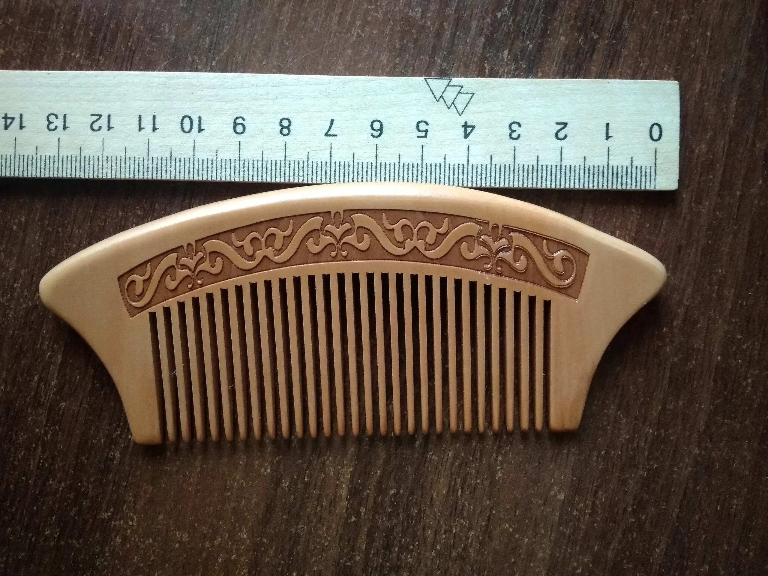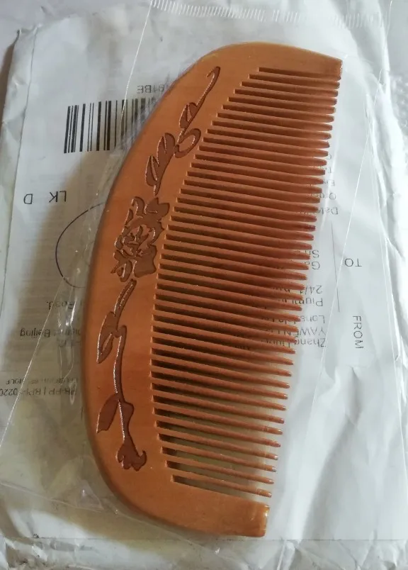 Красивая расческа, мужу понравилась. Простая, но в то же время выглядит не "как у всех". Цена вообще смешная, куплю еще себе, папе, подарю кому-нибудь)). Присутствует запах (не поняла, не то дерево так пахнет, не то отдушка какая-то, но приятно). Долгая доставка (заказала 22.01, зарегистрировано на местной почте 15.03), отслеживалась до слов " Прибыло в страну назначения ", потом тишина. Думала пропала моя посылка, ан нет. Спасибо