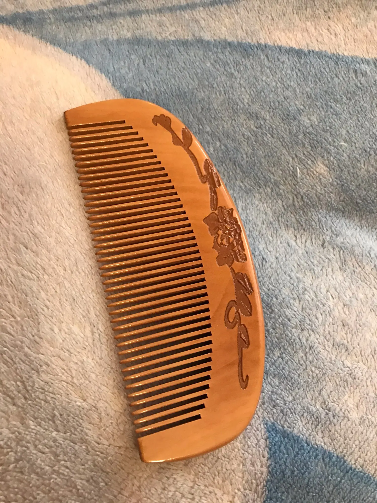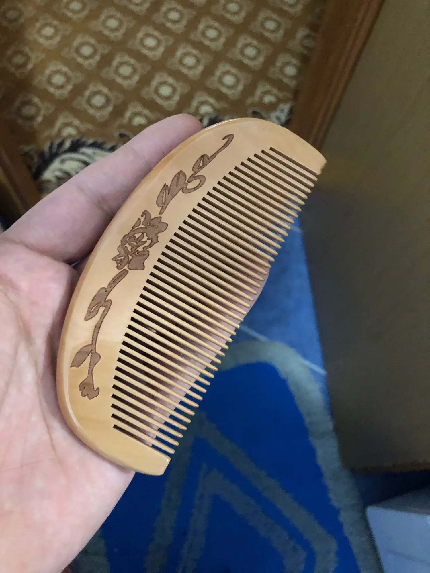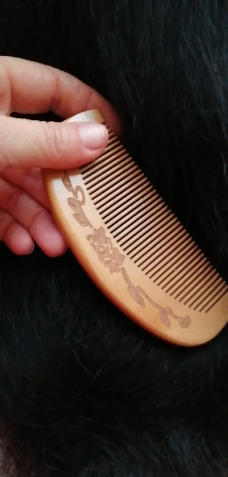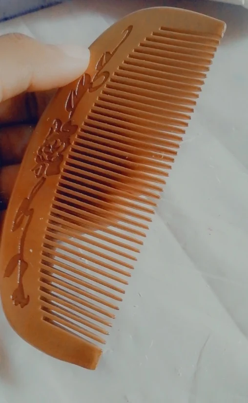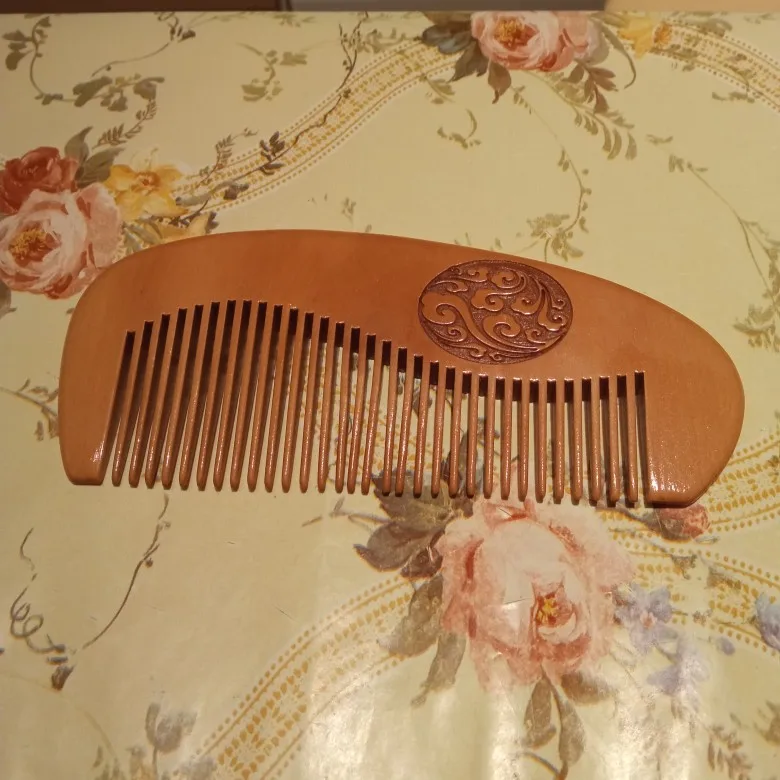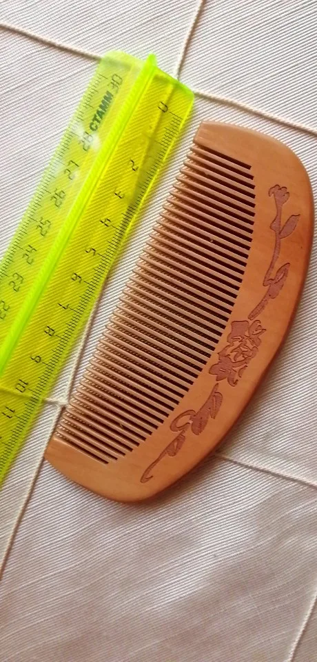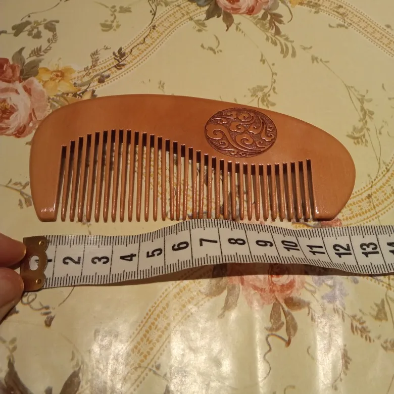 Хорошая расчёска. Полностью соответствует фото продавца и описанию. Для массажа головы очень хорошо. И по длине идеальна для не большой дамской сумочки. Доставка в Москву молниеносная. Дерево натуральное, пахнет приятно, рисунок красивый.