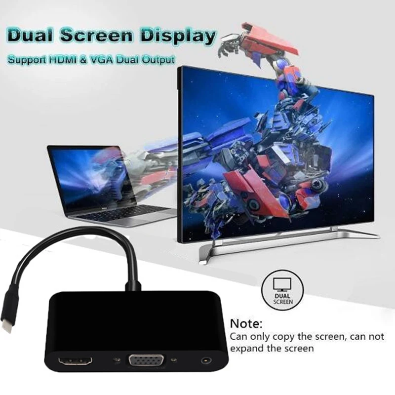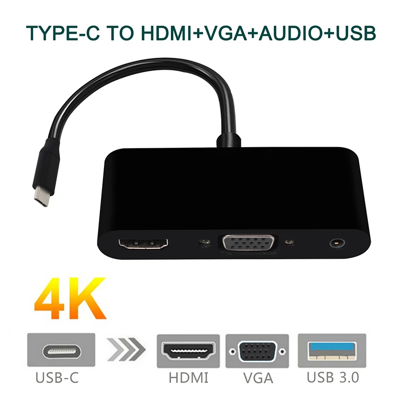 Характеристика:* Тип C до HDMI, VGA, TOFOCO 4K * 2K 3-в-1 USB-C к HDMI VGA с аудио адаптер (для подключения порта Thunderbolt 3) + конвертер USB 3,0 для Macbook / Chromebook Pixel / Samsung Galaxy S8 PLUS *Портативный цифровой видеоадаптер, вы можете подключиться к HDTV, монитору, компьютеру, планшету, проектору и другому HDMI/дисплею к вашим устройствам USB / Type C с HDMI /Разъем VGA; Поддерживает разрешение до 4K Ultra HD UHD 4K x 2K @ 30Hz (3840x2160), включая 720p, 1080p, И 1600x1200 для мониторов или проекторов *Разрешение до 4K x 2K @ 30 Гц: для потоковой передачи видео с ноутбука/телефона/планшета с портом USB C на HDTV/монитор/проектор с портом HDMI 1,4. Выход: видео и аудио. Кабель HDMI/VGA необходим (не входит в комплект), HDMI: максимальное разрешение 4K x 2K (3840x2160) @ 30Hz, вниз совместим с 1080P, 1080I,720P *USB 3.1 Тип C к HDMI адаптер может расширить или зеркало экрана для HDMI/включен телевизор или дисплей, разрешение до 3840x2160 @ 30 Гц и full HD 1080p. Порт HDMI поддерживает синхронизированный аудио и видео сигнал *Порт USB 3,0 позволяет использовать мышь, клавиатуру, камеру, u-диск, съемный жесткий диск, камеру или другие стандартные устройства USB 3,0(USB 3.0 не поддерживает мобильный жесткий диск)