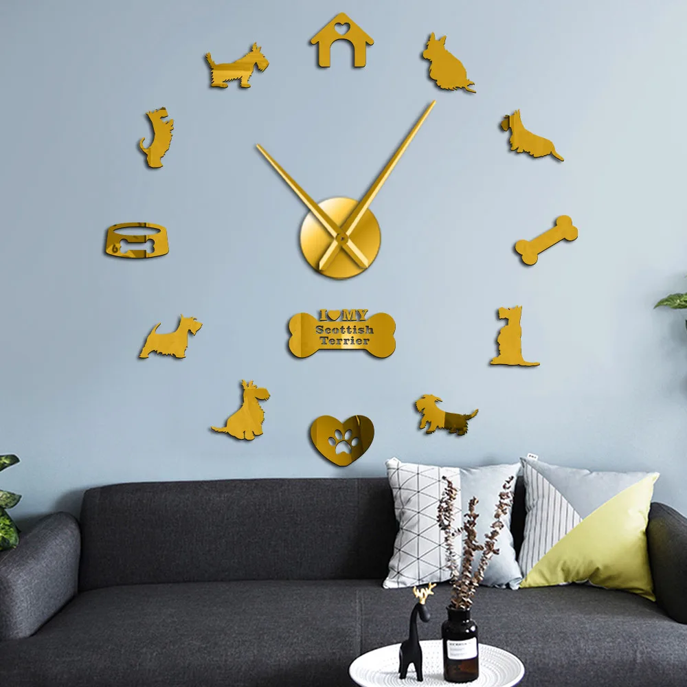 Шотландский терьер большие настенные часы Абердин терьер я люблю мой Скотти самодельные Наклейки Безрамные большие настенные часы бесшумное движение